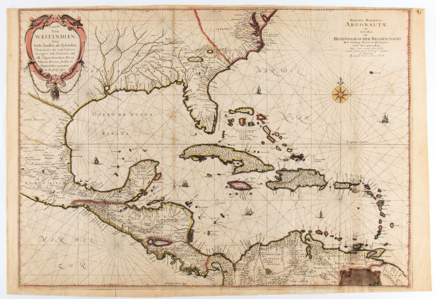 Johannes Vingboons [USA] Caarte Van West Indien, Soo Vaste landen als Eylanden, Nieuwelyckx Met Veele Perfexien Gecorigeert Ende Verbeetert…