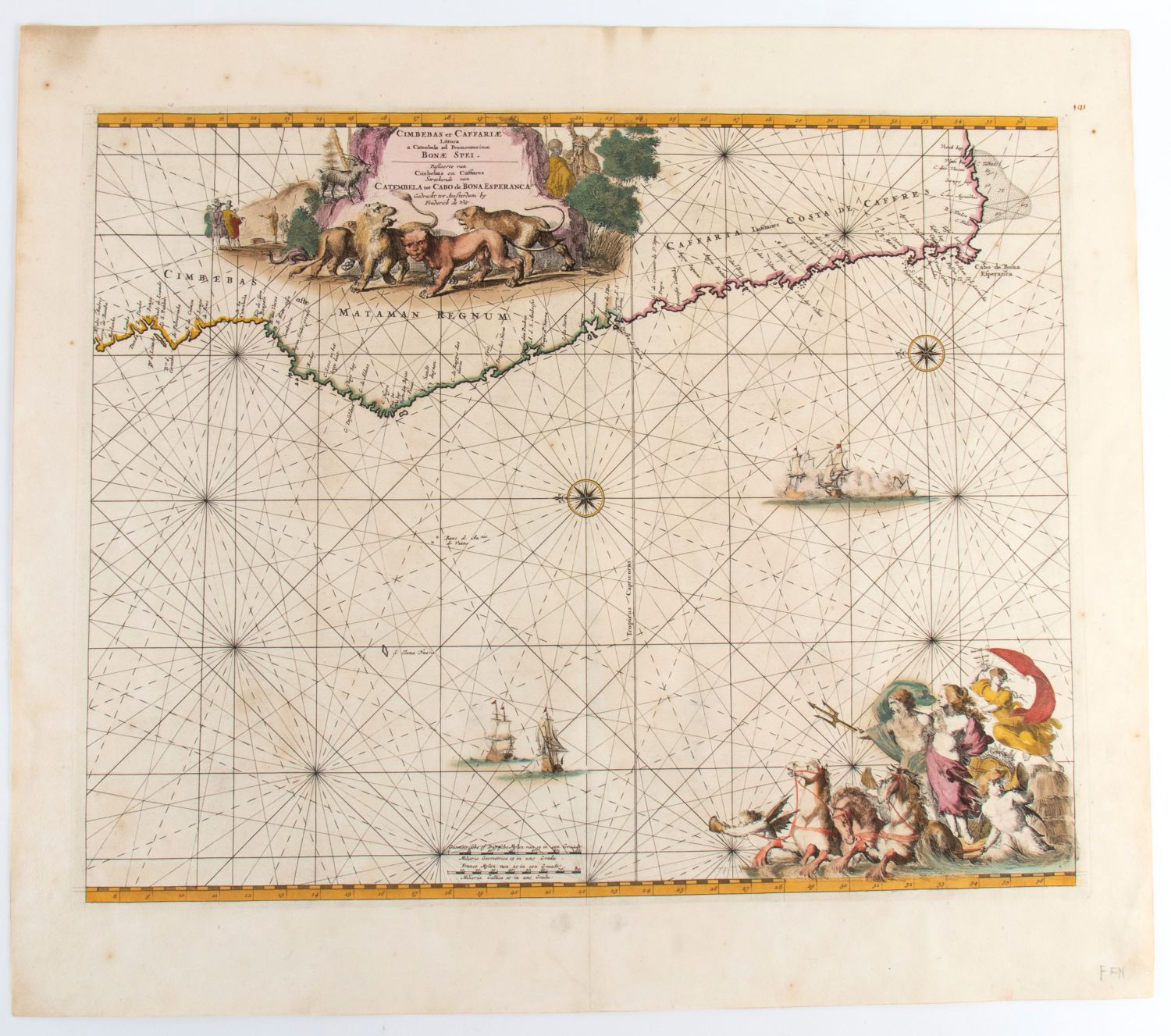 Frederick de Wit [Africa - carte nautiche] Occidentalior Tractus Indiarum Orientalium | Tractus Littorales Guineae a Promontorio Verde | Cimbebas et Caffariae Littora a Catenbela ad Promontorium Bonae Spei | Barbariae et Guineae Maritimi