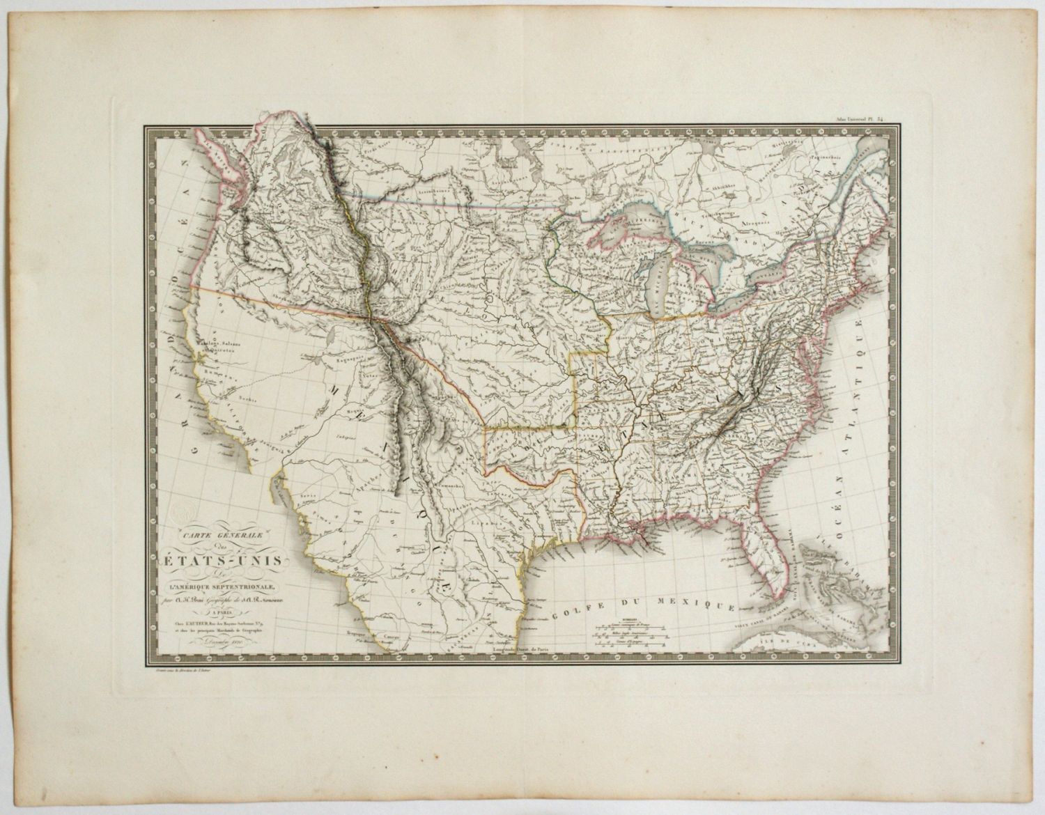 Acquaforte e bulino, 535 x 690 mm (foglio). Prima edizione. Tratta dal "Atlas Universel". Sopra il cartiglio timbro a secco del autore "CARTE ENCYPROTIPE | DU FONDS | DE L’AUTEUR e iniziali AB" (Lugt 5271).Molto bella impressione stampata su carta non vergata. Foglio con grandi margini preservati. In ottimo stato di conservazione.