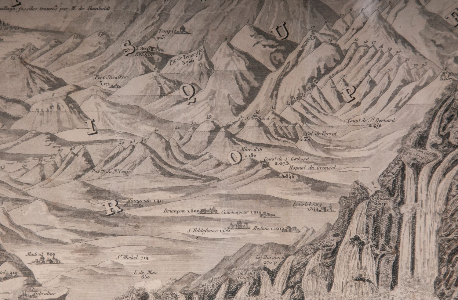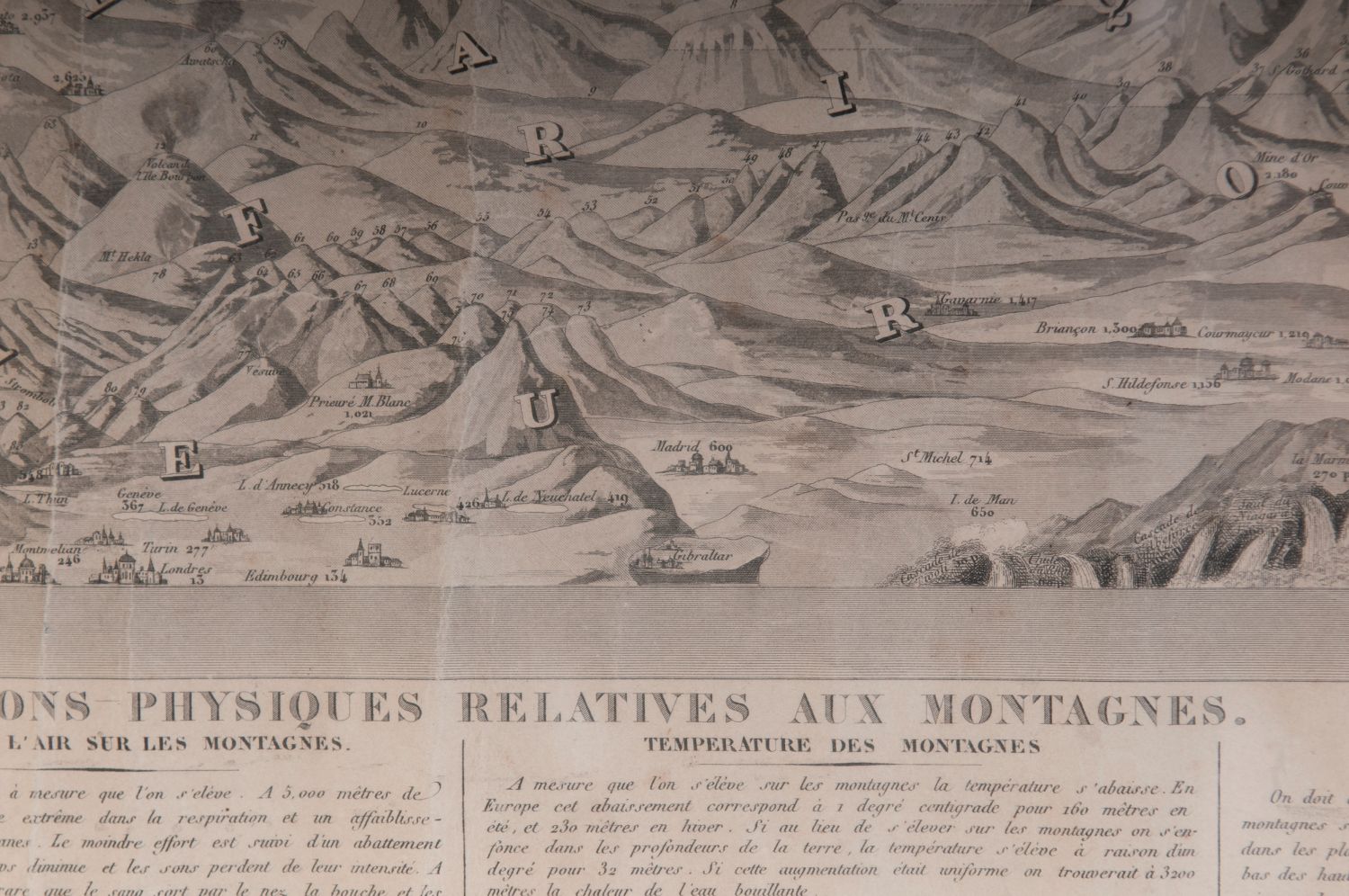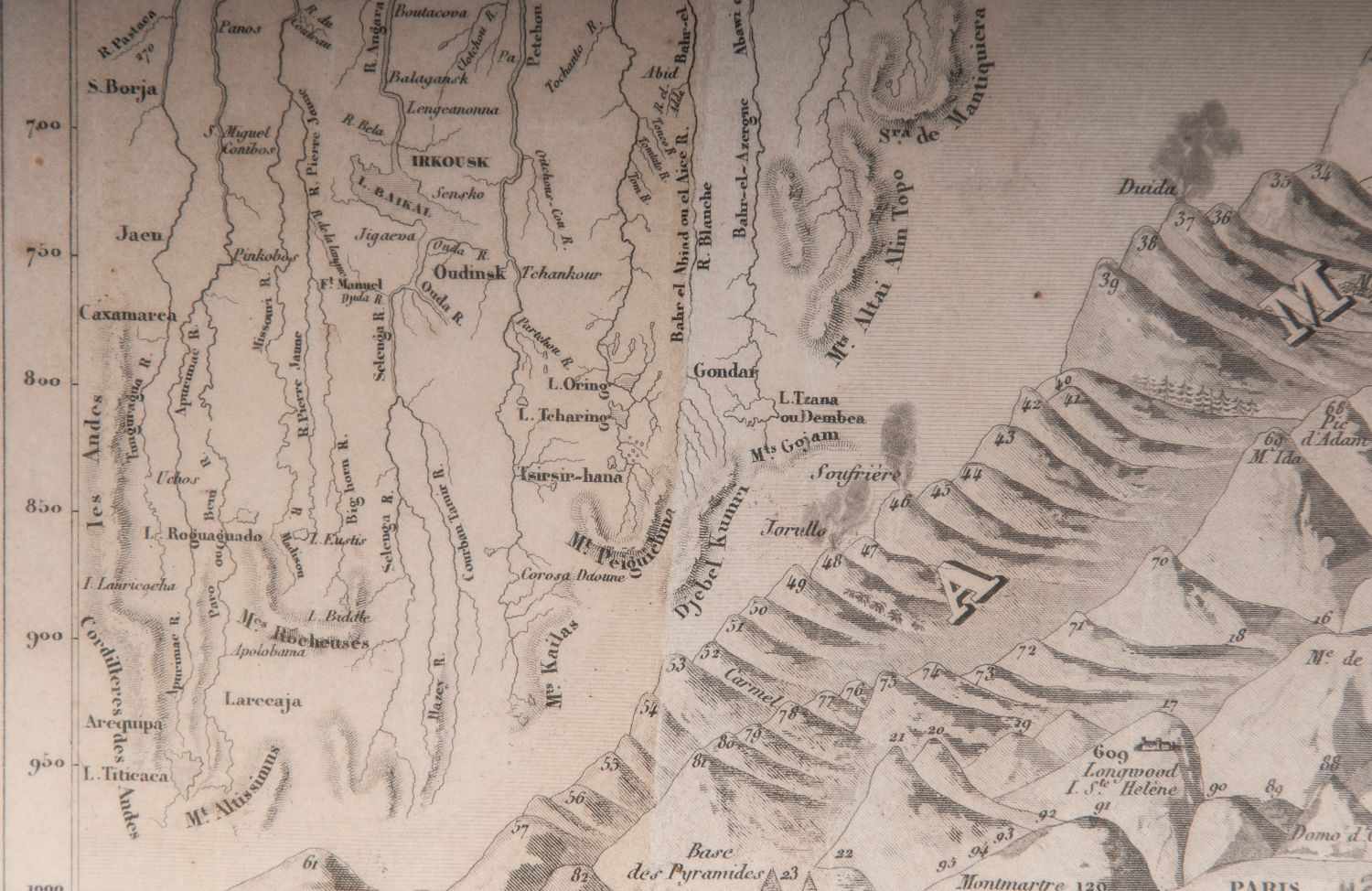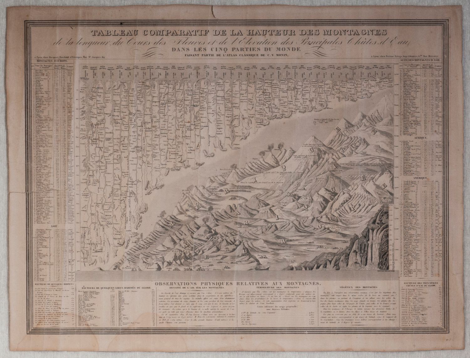Lotto 187 | [Mappamondo - montagne] Tableau Comparatif De La Hauteur Des Montagnes de la longuer du Cours des Fleuves et de l'Elevation des Principales Chutes d'Eau Dans Les Cinq Parties Du Monde, C. Monin, 1840