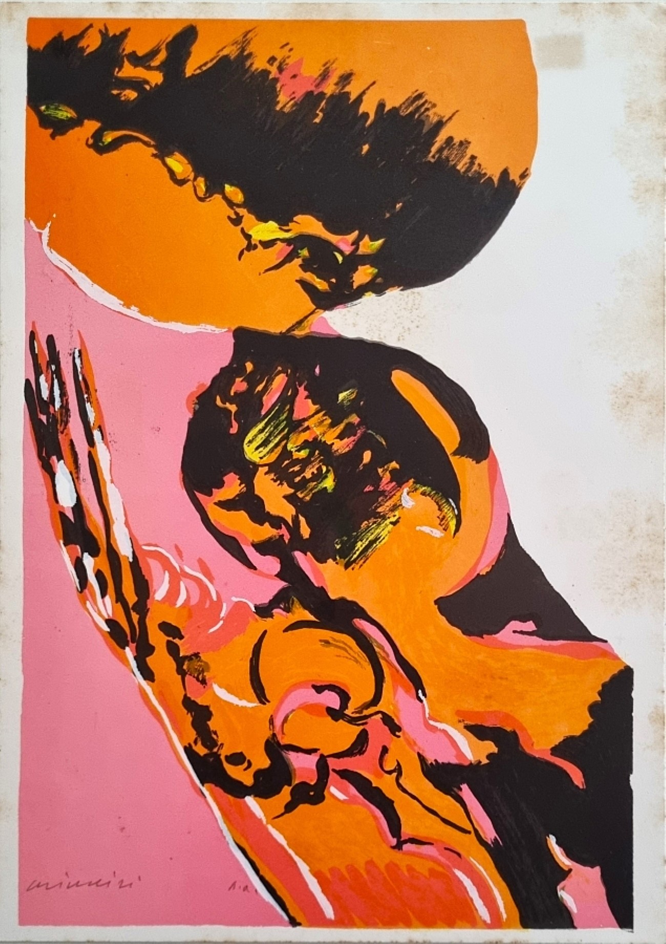 BRINDISI REMO Roma 1918 - Lido di Spina 1996 "Senza titolo" Serigrafia su cartoncino cm 24x33. Firma e tiratura p.a. sul fronte in basso a sinistra. (Presenta fioriture sul margine destro).