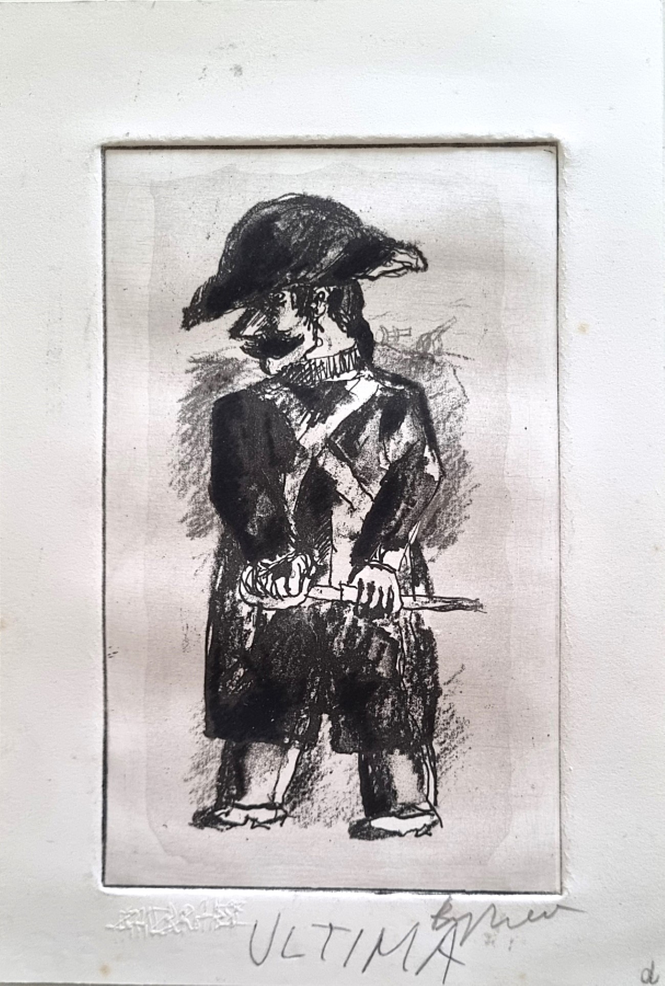 BORGHESE FRANZ Roma 1941 - 2005 "Senza titolo" Incisione, prova di stampa per esecuzione definitiva, su cartoncino cm 15,6x23,4 (foglio), cm 10,7x17,5 (disegno). Firmata sul fronte in basso a destra, timbro a secco Borghese a sinistra, dicitura "Ultima" al centro (numerazione finale). Provenienza Studio Borghese.