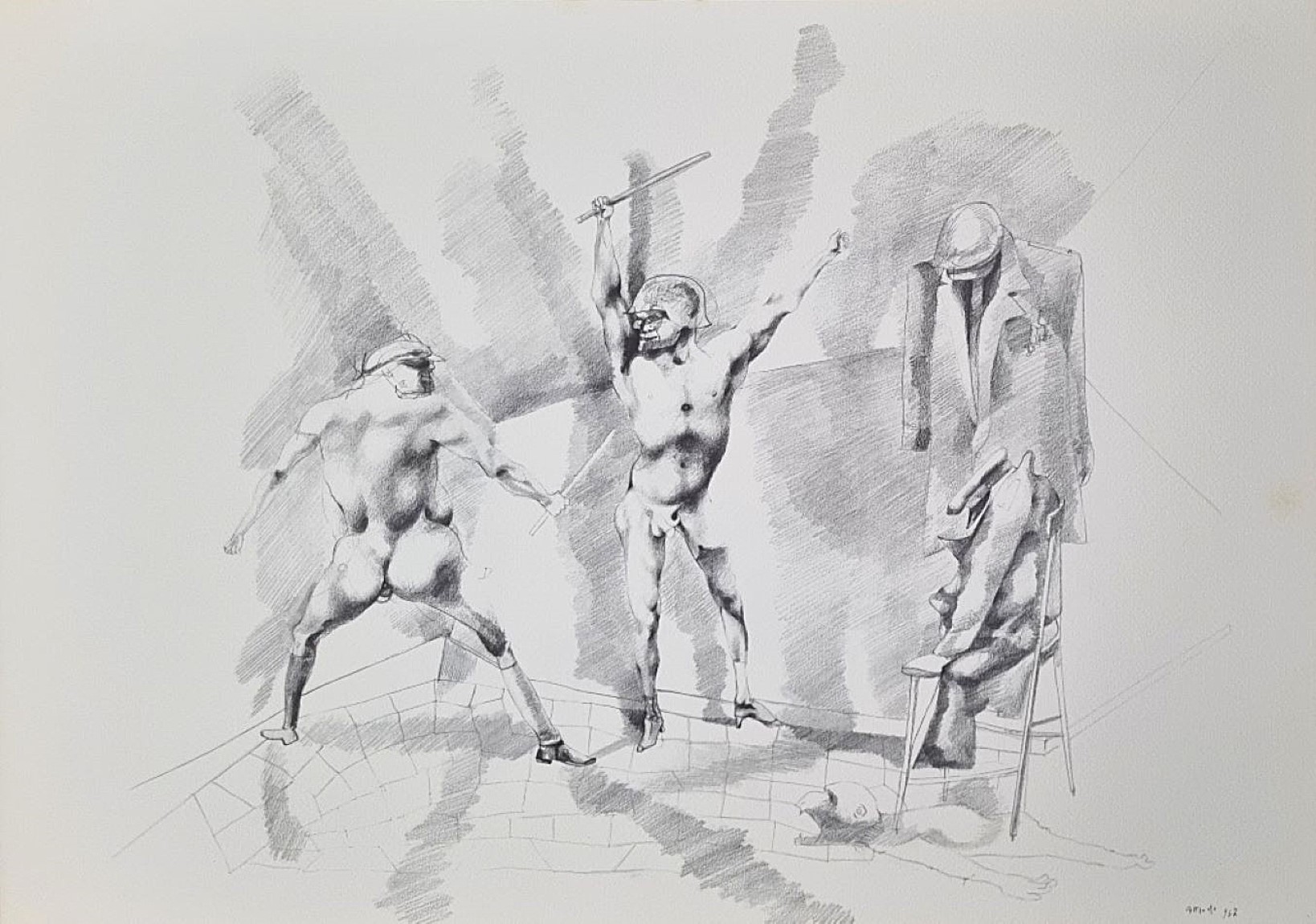 ATTARDI UGO Sori 1923 - Roma 2006 "Achilleus II" Riproduzione litografica di opere eseguite dal Maestro cm 49x34. Firmata e datata sul fronte in basso a destra.