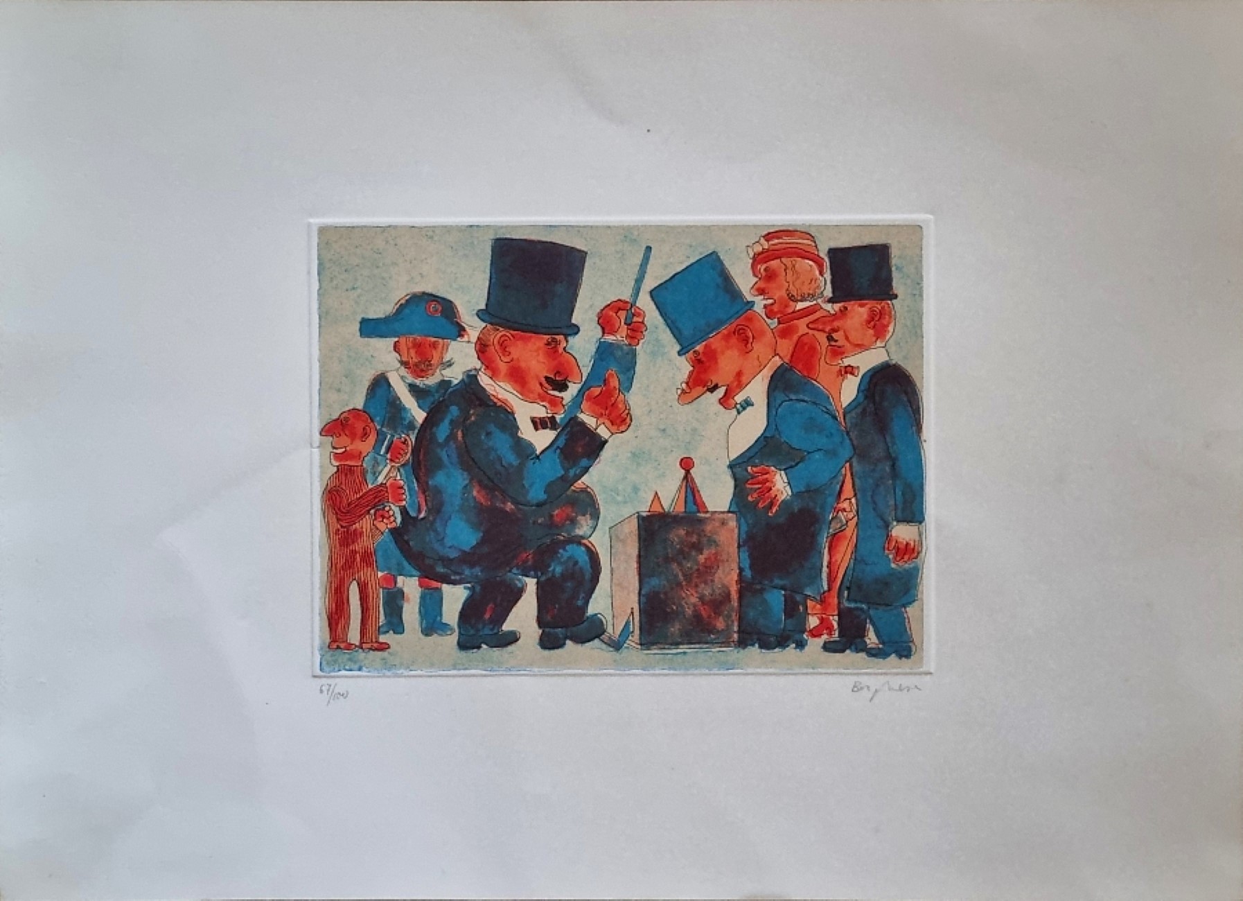 BORGHESE FRANZ Roma 1941 - 2005 "Senza titolo" Incisione su cartoncino cm 48x35 (foglio), cm 24x17 (disegno). Firmata sul fronte in basso a destra, tiratura 67/100 a sinistra. Provenienza Studio Borghese.