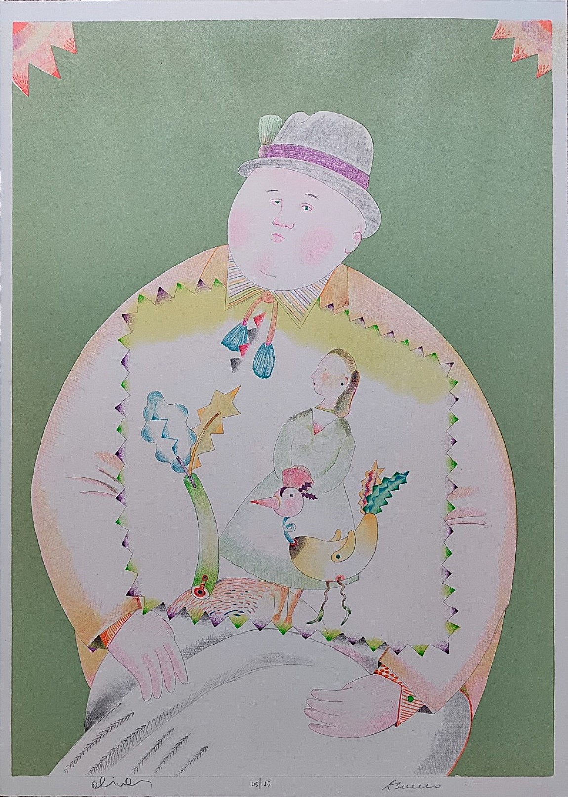 BUENO ANTONIO Berlino 1918 - Fiesole 1984 "Senza titolo" Litografia a quattro mani (Bueno-Alinari) su cartoncino pesante cm 50,5x70,5. Firma e timbro a secco sul fronte in basso a destra e sinistra, tiratura 45/125 al centro. Facente parte della Cartella Alieno.
