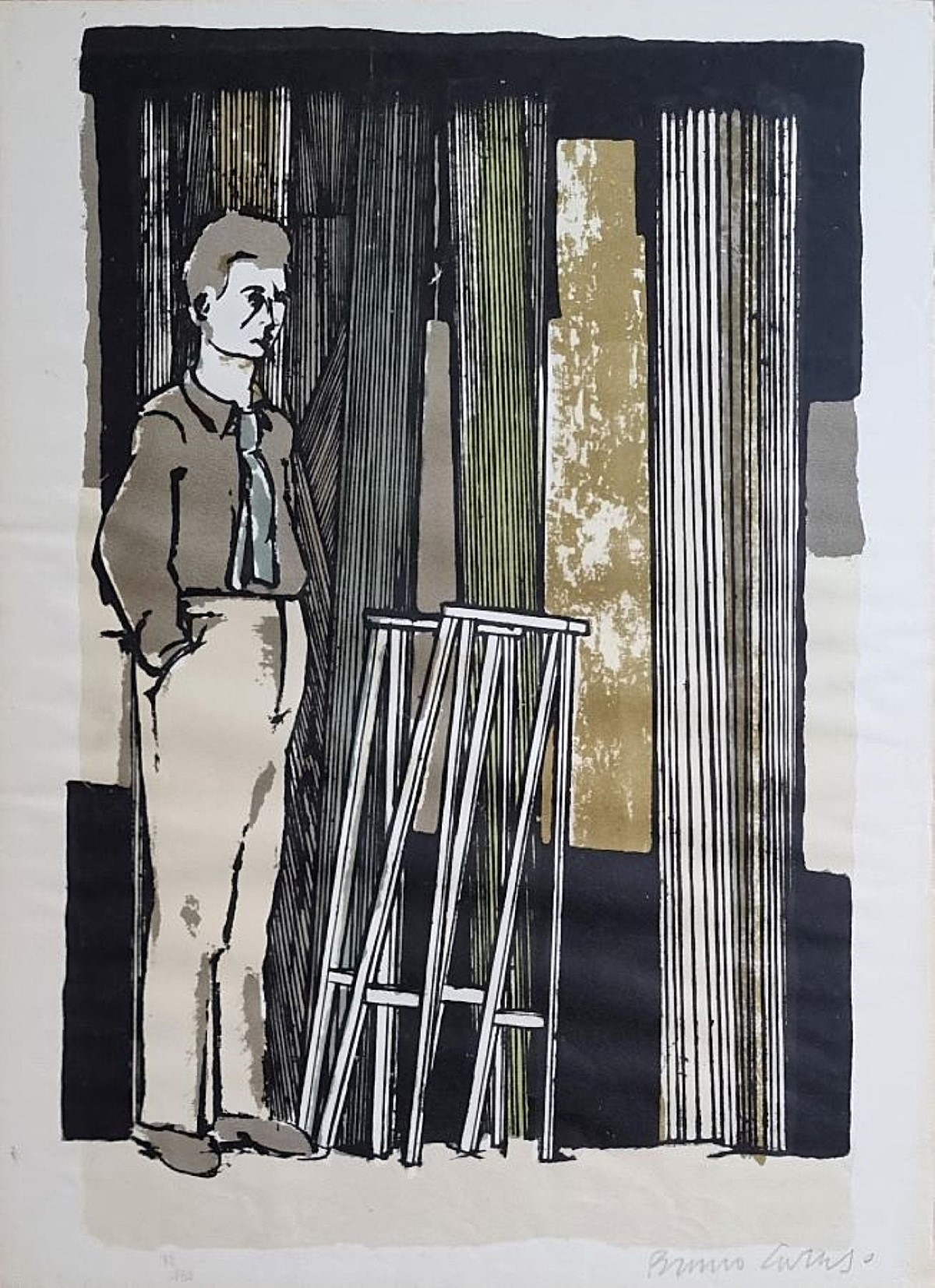 CARUSO BRUNO Palermo 1927 - Roma 2018 "Senza titolo" Serigrafia su cartoncino cm 46x63. Firmata sul fronte in basso a destra, tiratura 72/180 a sinistra.