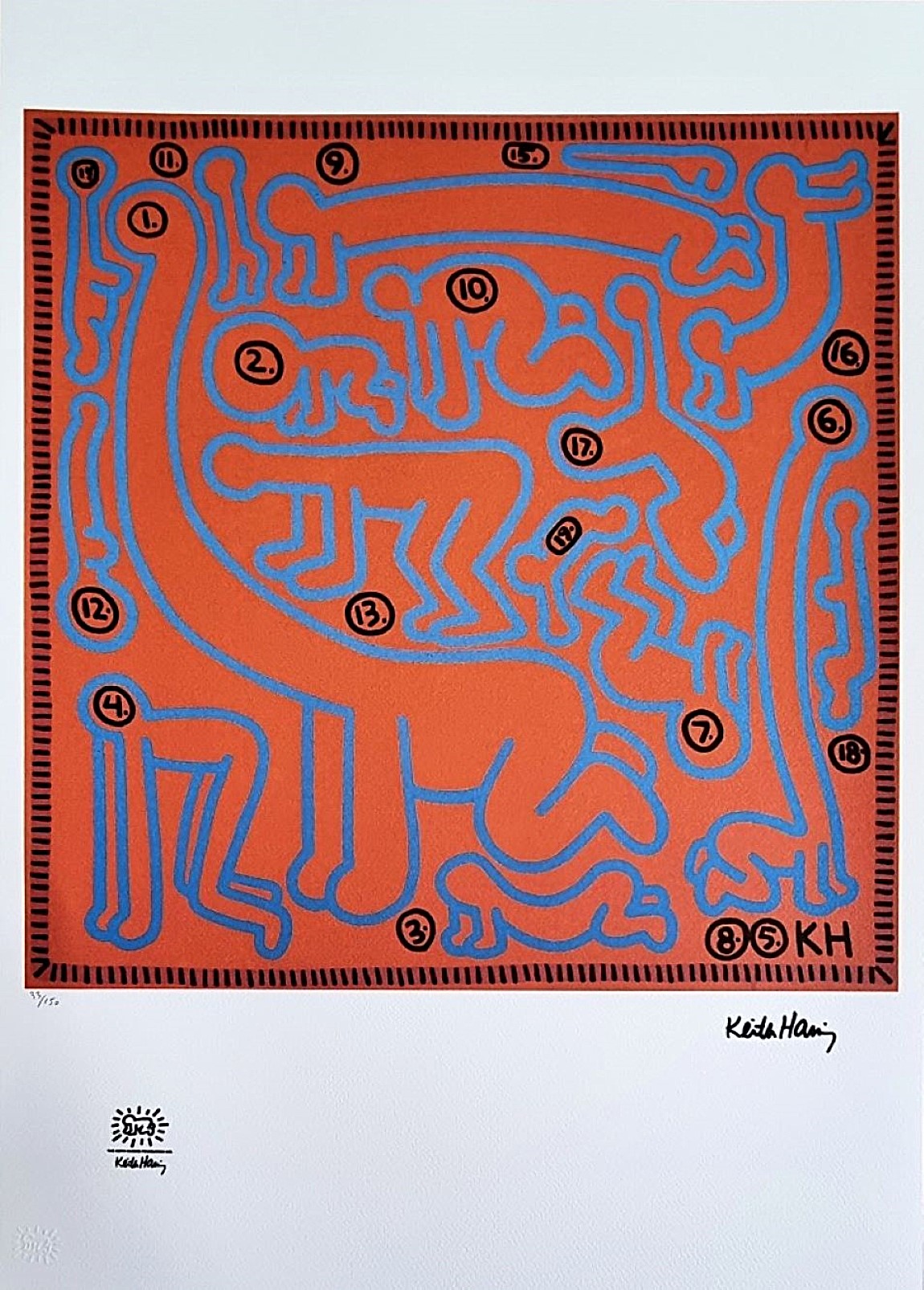 HARING KEITH Pennsylvania 1958 - New York 1990 "Senza titolo" Riproduzione litografica offset cm 50x70. Firma in stampa sul fronte in basso a destra, tiratura, timbro a secco e timbro in stampa a sinistra.