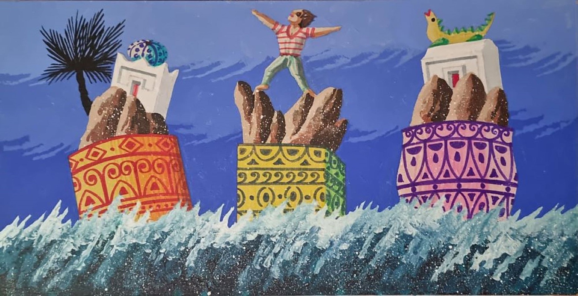 APHEL FABIO Cavalese (TN) 1957 "Scatole" Olio su tavola cm 40x20. Al verso firma e titolo.