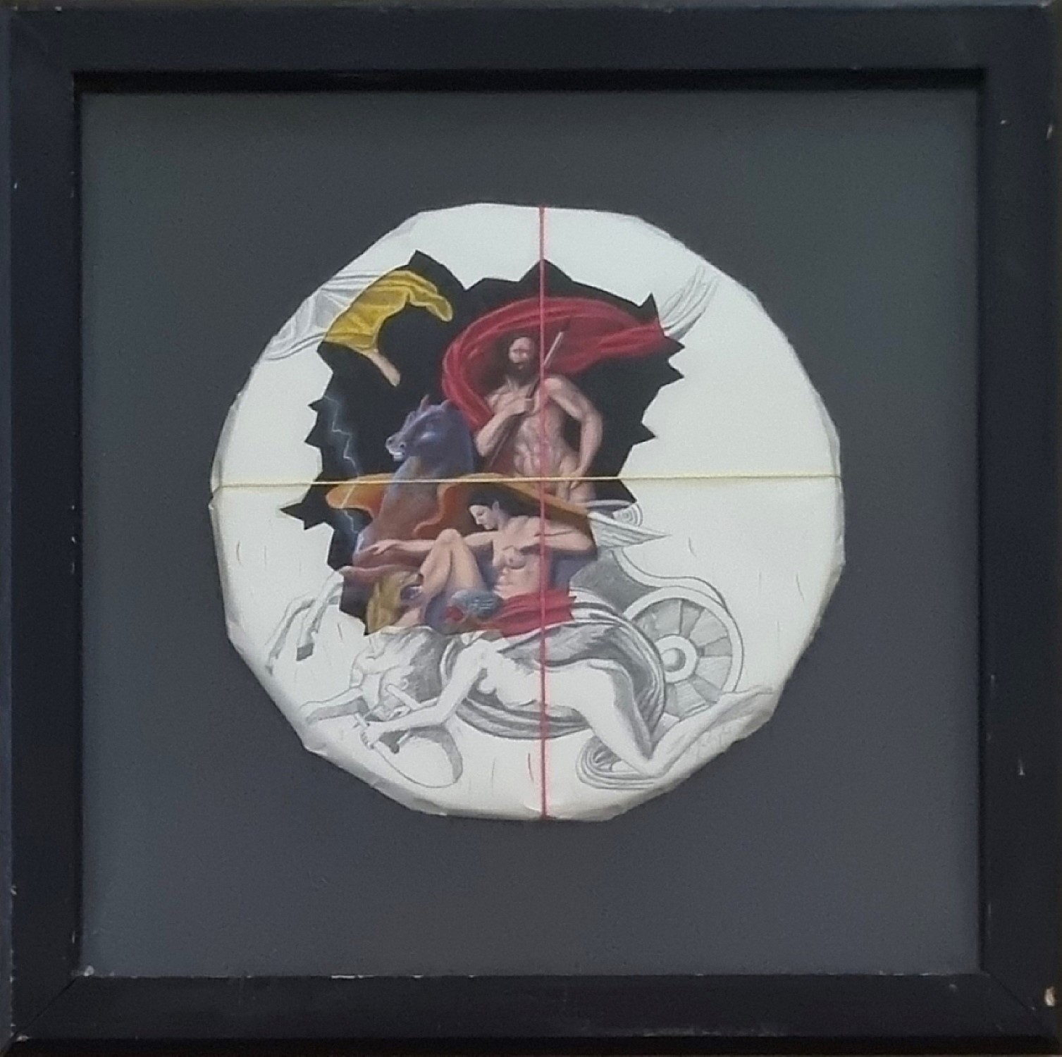 MEDAGLI GIUSEPPE Italia 1956 "Senza titolo" Olio, acrilico e tecnica mista su tela cm 24,5 di diametro. Firmato sul fronte in basso a destra. Al verso etichetta della Mostra Bidart V.