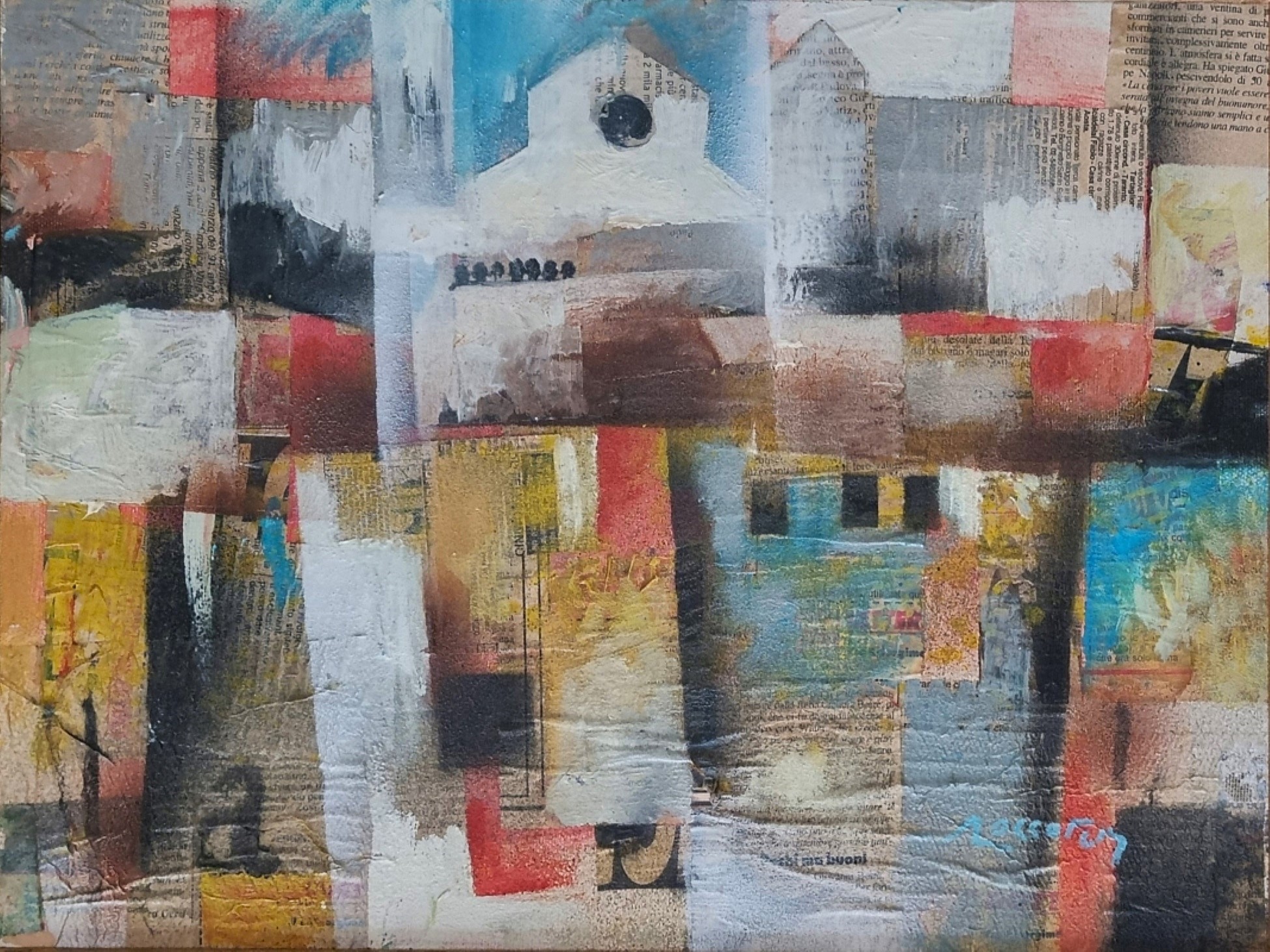 ROCCOTELLI MICHELE Minervino Murge 1946 "Senza titolo" Tecnica mista e collage su tela cm 30x40. Firmato sul fronte in basso a destra. Al verso firma e numero di catalogazione.