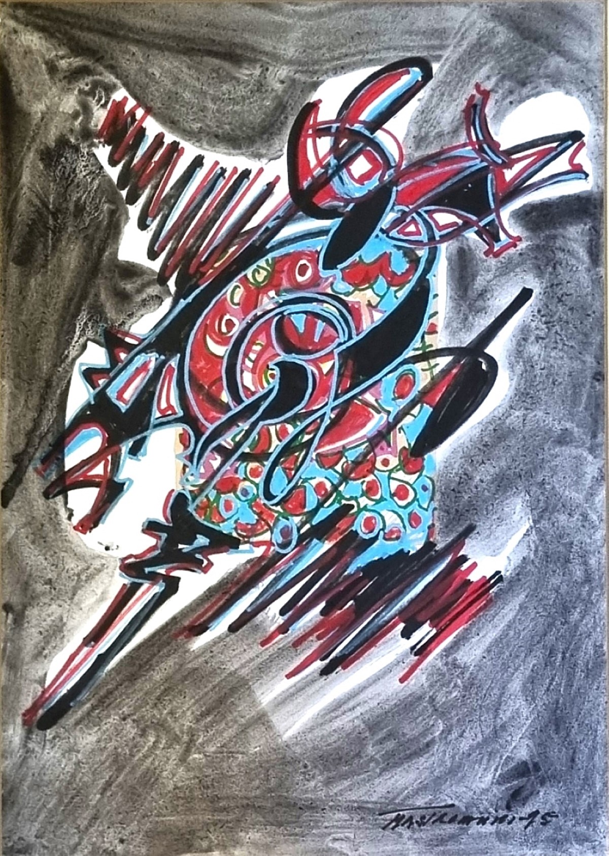 MASTROIANNI UMBERTO Fontana Liri 1910 - Marino 1998 "Senza titolo" Tempera su cartoncino cm 35x48 del 1975. Firmata e datata sul fronte in basso a destra.