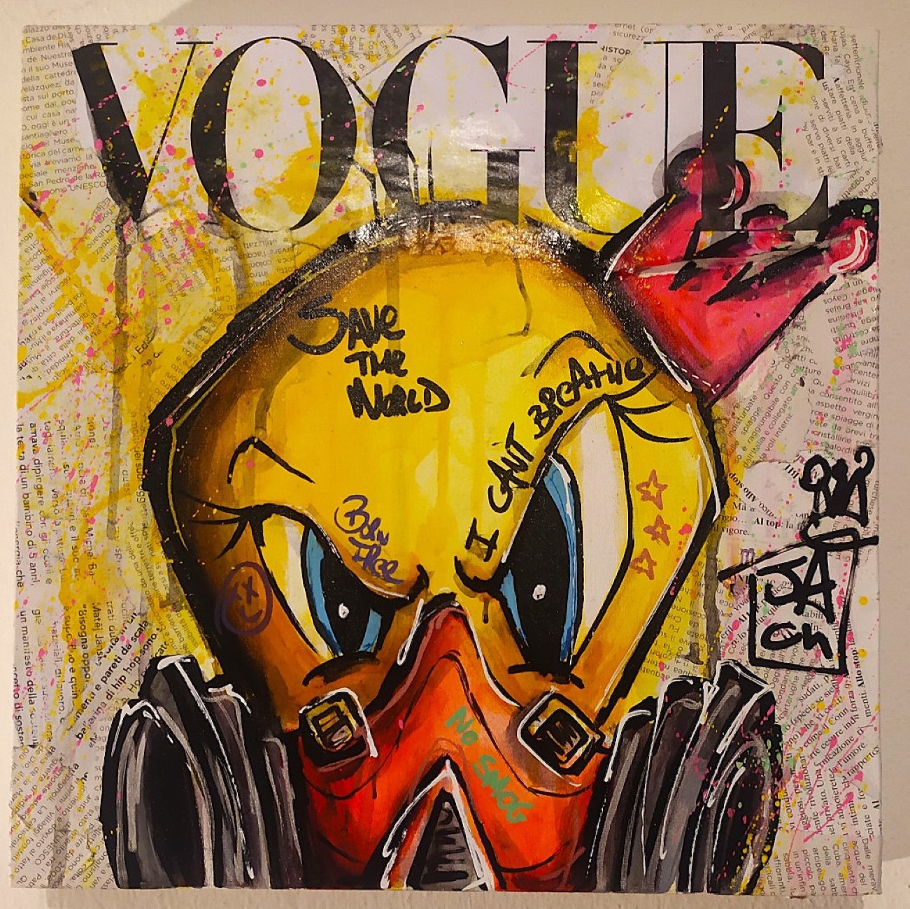 PEREGO JACK Italia 1988 "I can't breathe" Tecnica mista su tela cm 30x30 del 2023. Firmata sul fronte, sul retro intitolata, firmata e datata. Autentica su foto.