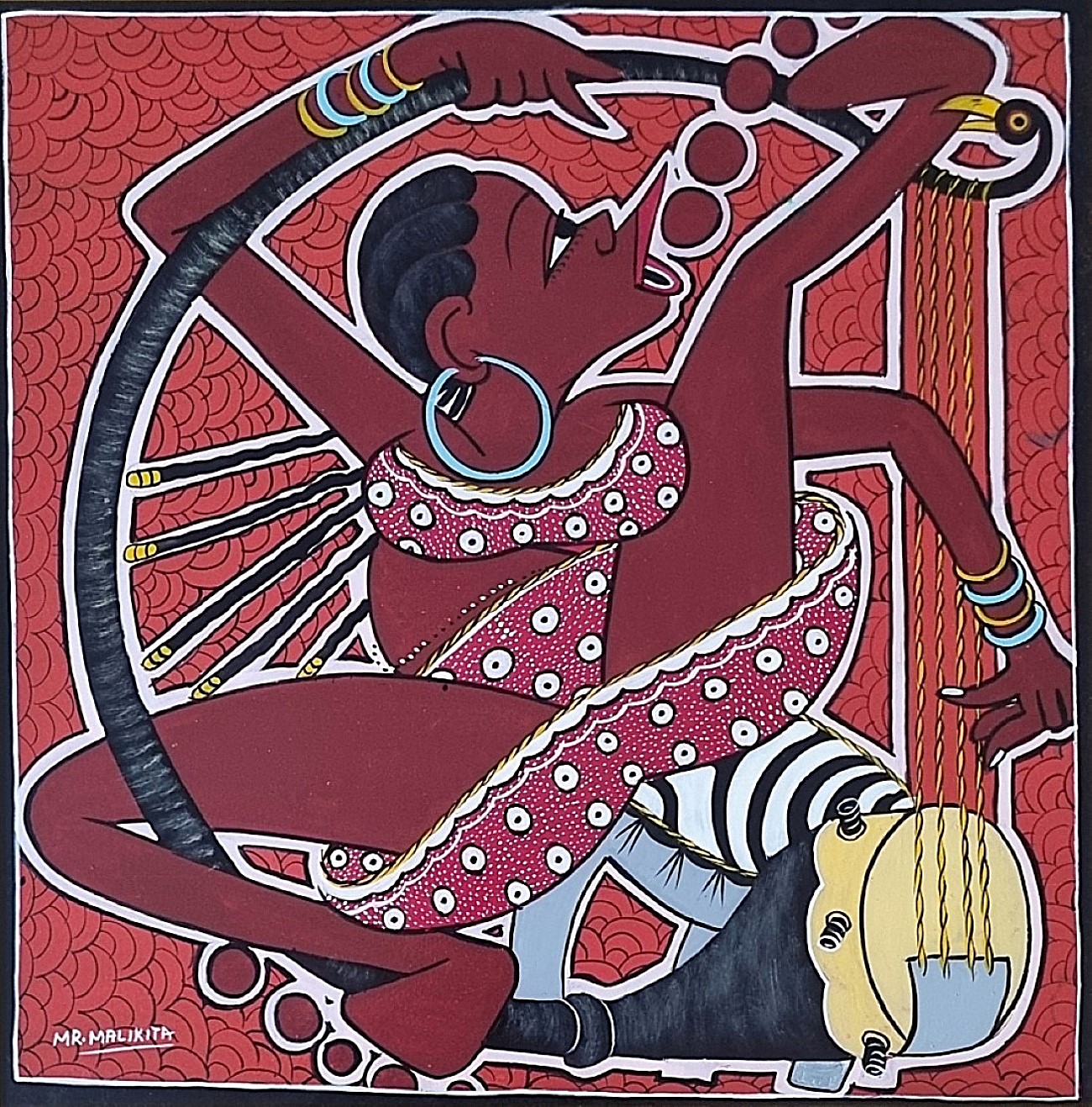 MALIKITA M. MARUS Tanzania 1964 "Mamma Africa" Acrilico su tela cm 61x61. Firmata sul fronte in basso a sinistra e al verso. Foto con l'opera nelle mani del Maestro.