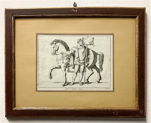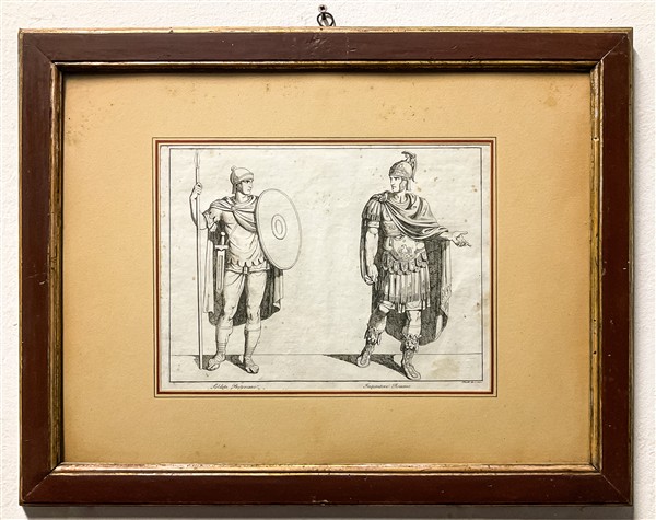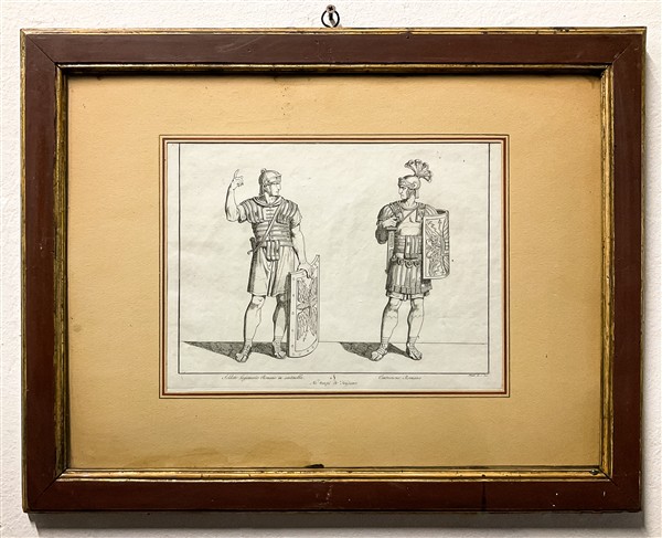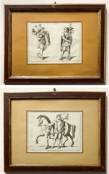 Gruppo di otto incisioni con raffigurazioni di soldati romani