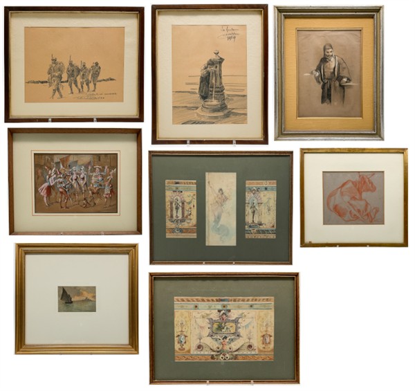 Scuola di fine secolo XIX e inizio secolo XX Lotto composto da nove tecniche m