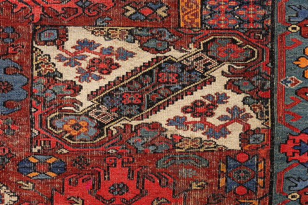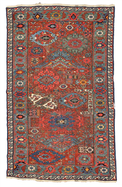 Tappeto Sumak, Caucaso, inizio secolo XX.Decoro Vagireh con medaglioni e simbol