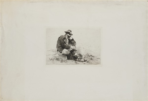 Eleuterio Pagliano "Il bucato" e "Contadino abruzzese" acquaforte (i fogli cm 33