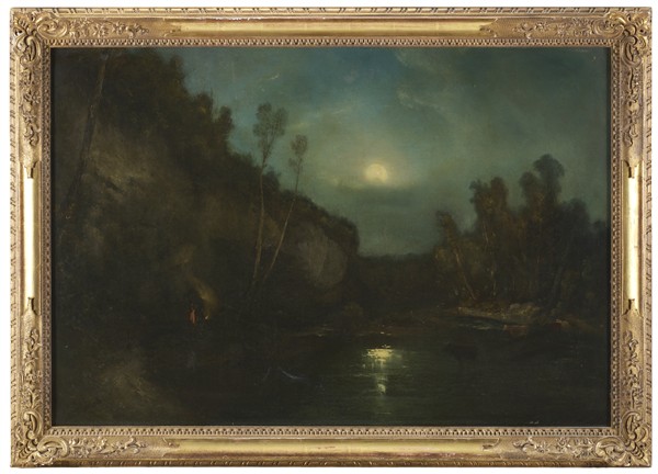 Ugo Manaresi "Al chiaro di luna" olio su tela (cm 74x108) firmato in basso a si
