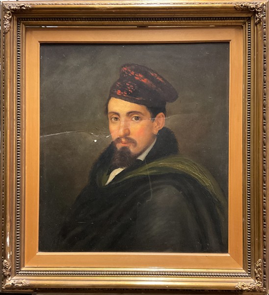 Scuola lombarda del secolo XIX "Ritratto di uomo con tabarro e copricapo" oli
