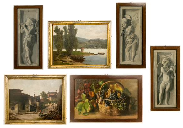Lotto composto da sei dipinti ad olio di diversi soggetti e misure (cm max 60x100)
