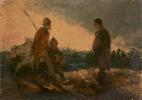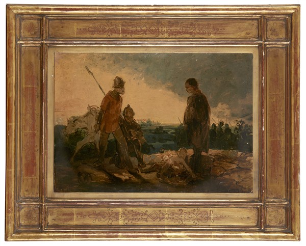 Domenico Induno "Dopo la battaglia" bozzetto ad olio su cartone (cm 28x39) firm