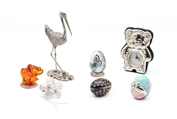 Scatola contenente numerosi oggetti in argento (g pesabili 190), metallo argentato e altri materiali di diversa forma e decoro (difetti)