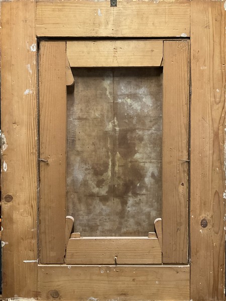 (restauri, piccole cadute di colore, difetti, una "fenditura" verticale al centro e uno "strappo" in diagonale in alto a destra)