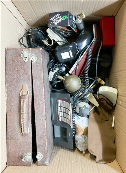 Lotto composto da diversi oggetti fra cui telefoni, radiotrasmittenti e strumen