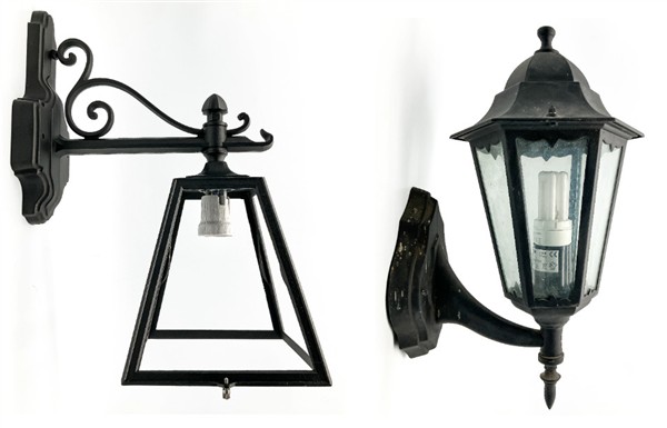 Lotto composto da quattro diverse lanterne da esterno in ferro e metallo di cui