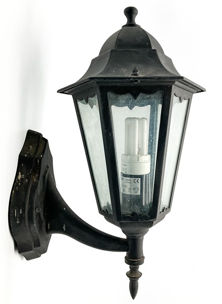Lotto composto da quattro diverse lanterne da esterno in ferro e metallo di cui due da parete (h max cm 50) (difetti e mancanze)