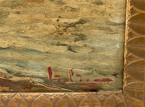 Firma indecifrata del secolo XX "Marina napoletana" olio su compensato (cm 20