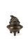 Piccolo bruciaprofumo tripode in bronzo parzialmente dorato con anse leonine e coperchio sormontatao da leone buddhista