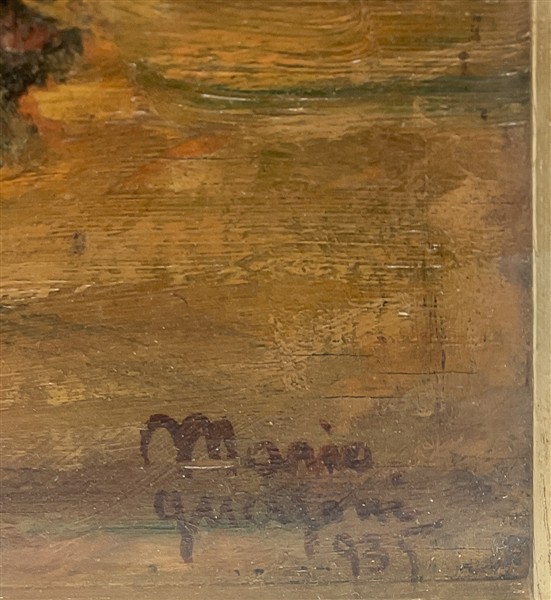 Mario Guerzoni "I cipressi della Guardia" Sanremo, 1935 olio su compensato (cm 3