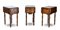 Gruppo di tre tavolini ad alette in legni vari con gambe tornite, due cassetti e antina laterali (cm chiuso 54x68x37 cad.) (difetti)