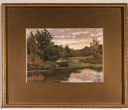 COOPER BYRON Inghilterra (Inghilterra) 1850 Paesaggio con ruscello Acquarello...