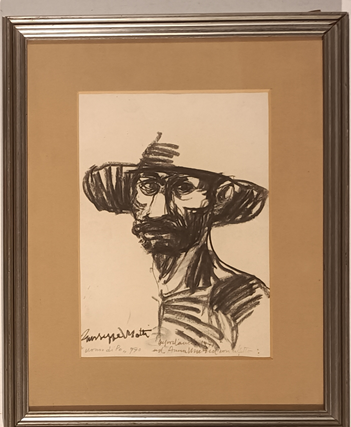 MOTTI GIUSEPPE Arena Po (Pv) 1908 Uomo di Po 1970 Carboncino su carta...