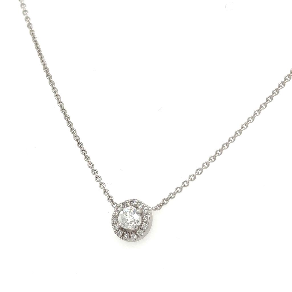 GIROCOLLO IN ORO BIANCO 14K CON DIAMANTE PER 0.25 CARATI S/SI2 E BRILLANTI PER 0.12 CARATI TOTALI F/SI1-2 TAGLIA-42CM PND30301 - COMMISSIONE D’ASTA 25%