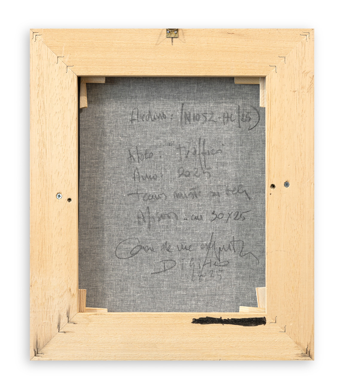 Firma, tecnica, misure, datazione e numero di archivio al retro