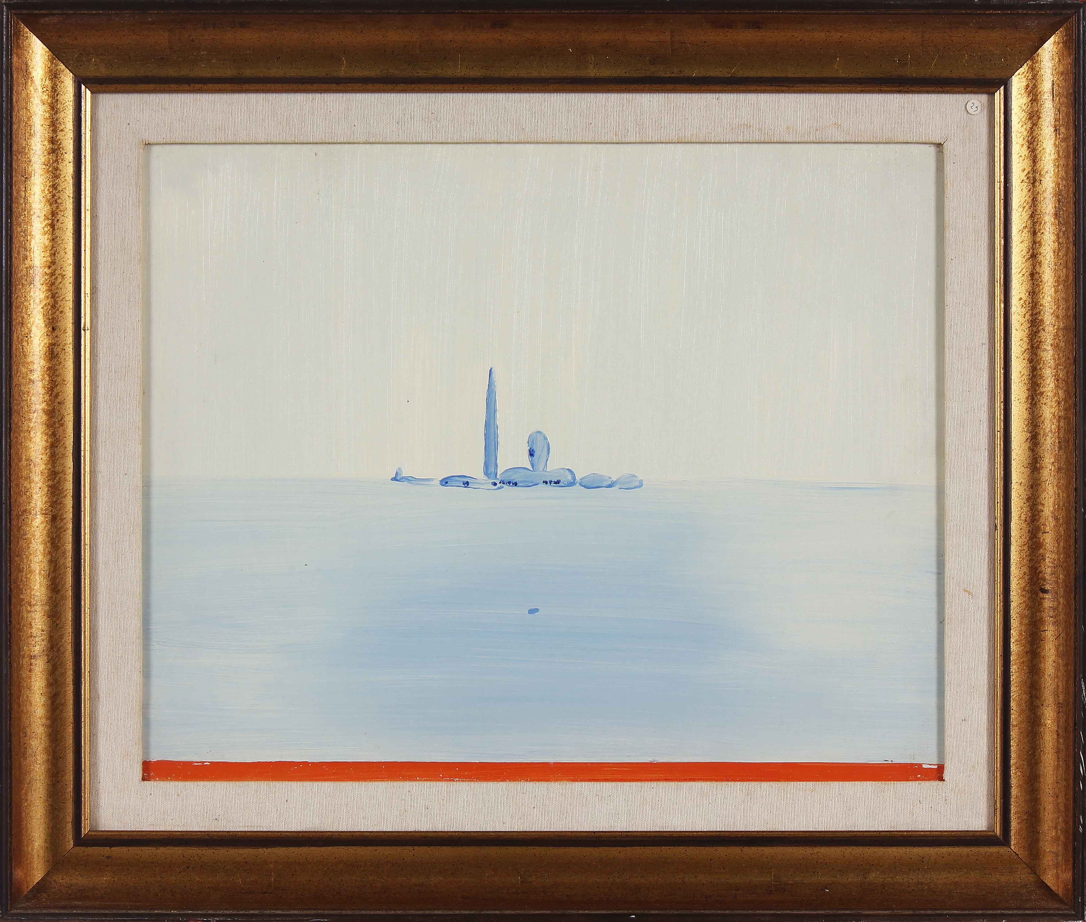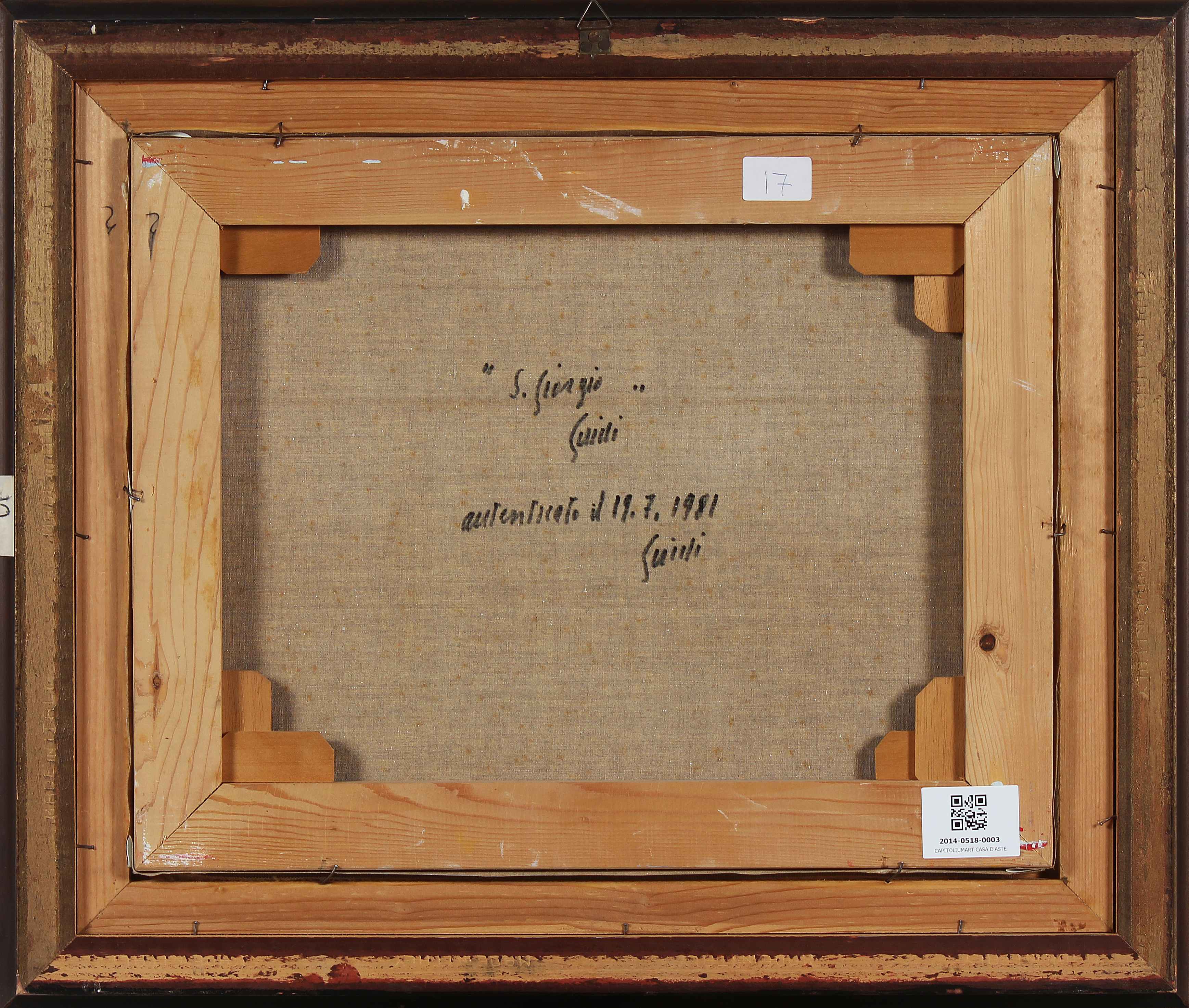 GUIDI VIRGILIO (1891 - 1994) Bacino di San Marco, San Giorgio. Olio su tela . Cm 50,00 x 40,00. Metà anni '70. Al retro titolo e firma per autentica. Opera archiviata presso L'Archivio Storico Artisti Veneti, come da documentazione fotografica allegata all'opera riportante il relativo numero d'inventario. Cornice presente