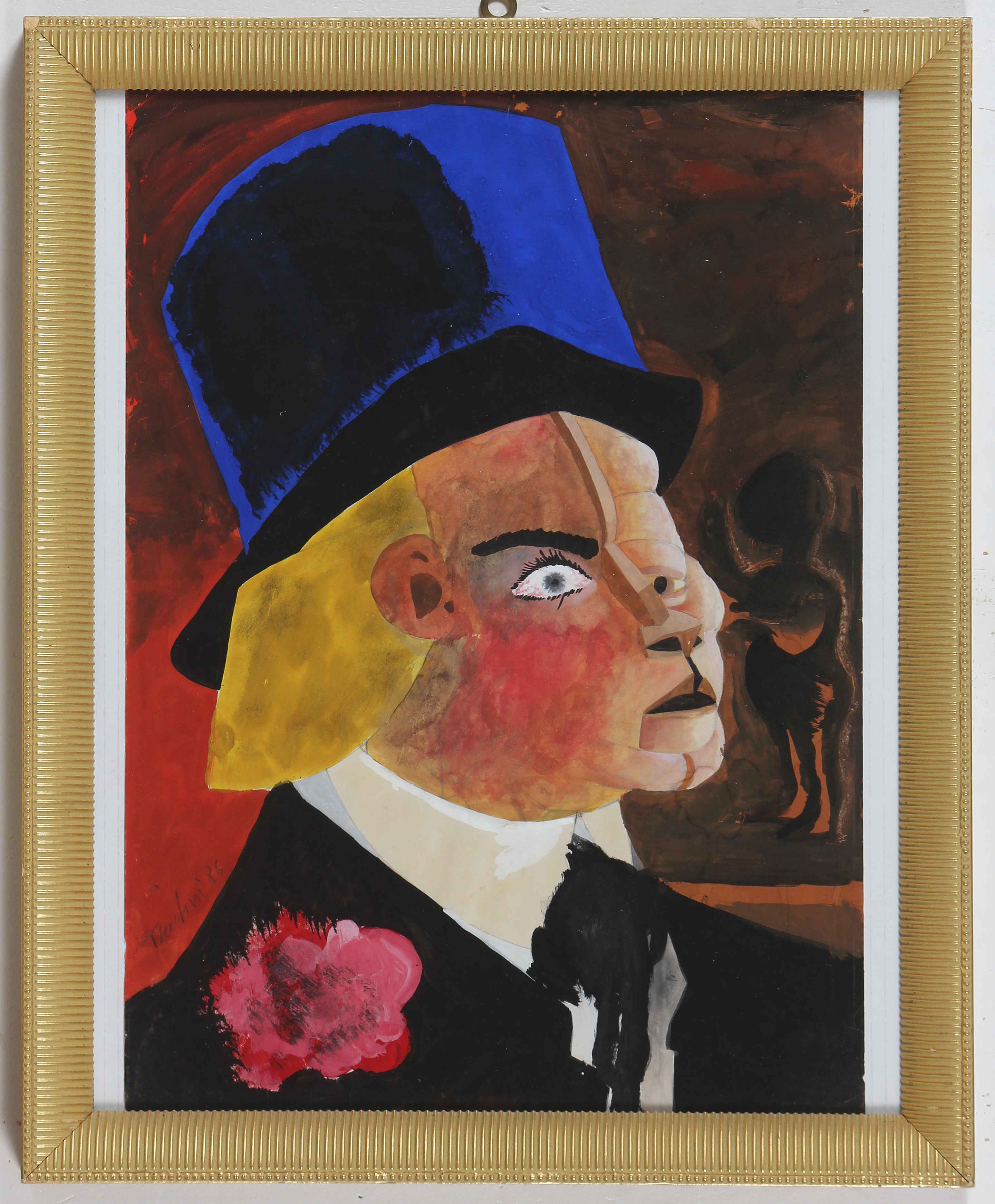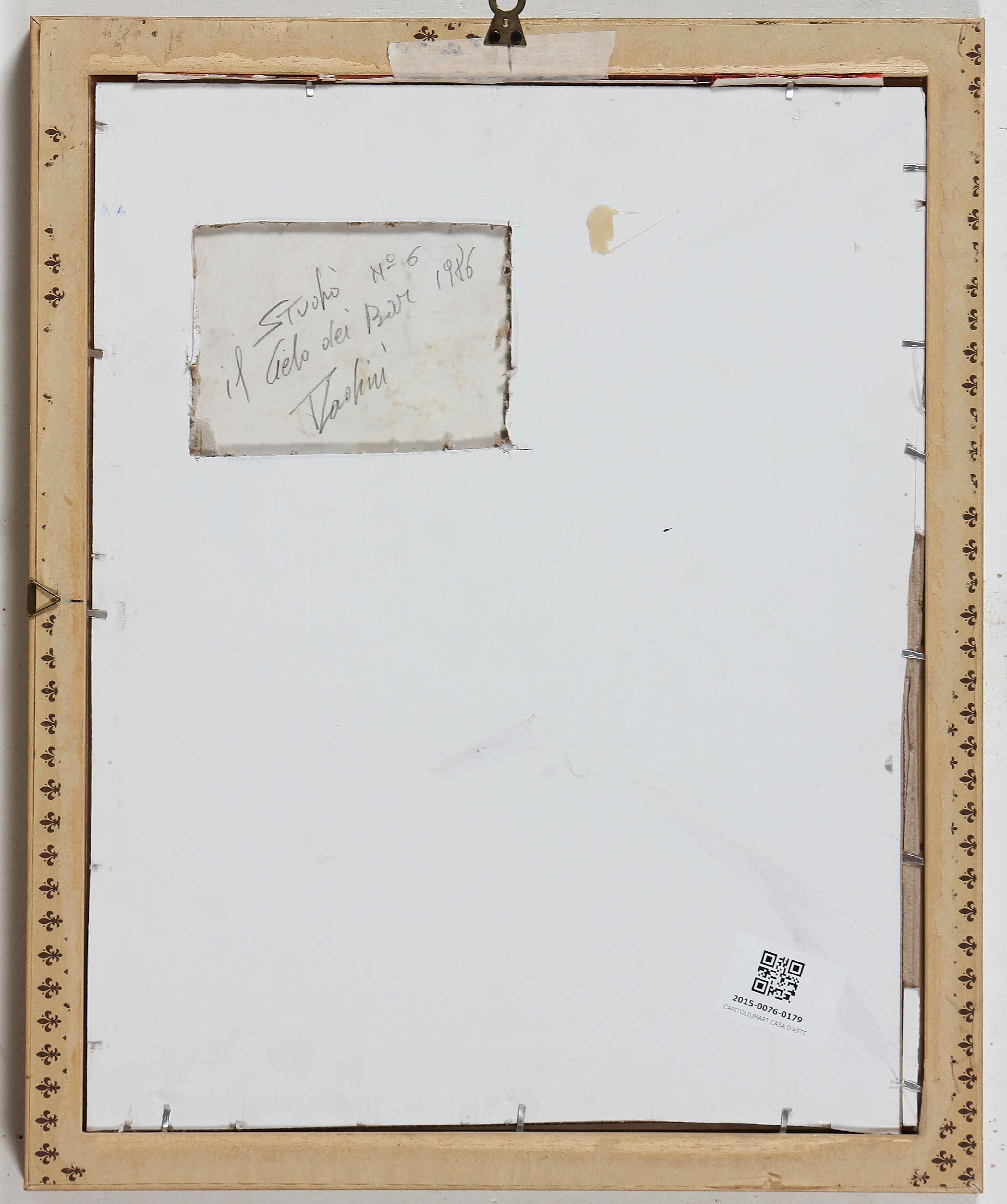 TADINI EMILIO (1927 - 2002) Studio n. 6 - il cielo dei bar. 1986. Tecnica mista su carta. Cm 38,00 x 48,00. Firma e anno in basso a sinistra. Al retro, titolo e anno. Cornice presente