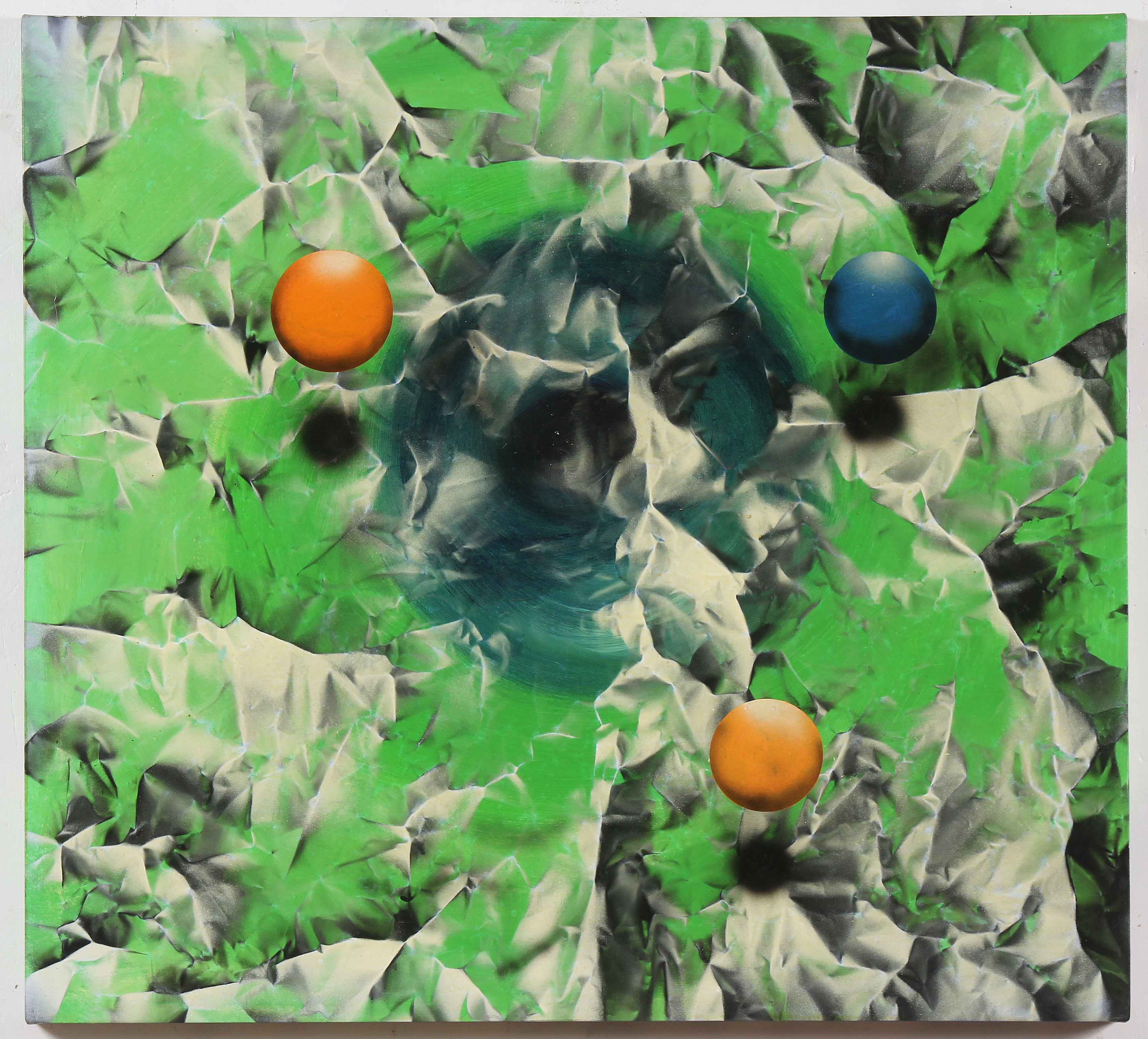 CHIESA RENATO NATALE (n. 1947) Sfere. 2006. Acrilico su tela. Cm 70,00 x 62,00. Firma al retro. Opera pubblicata sul catalogo Due Artisti Contro, Milano- Roma a cura di Casa delle Aste Meeting Art, Vercelli, p. 38.