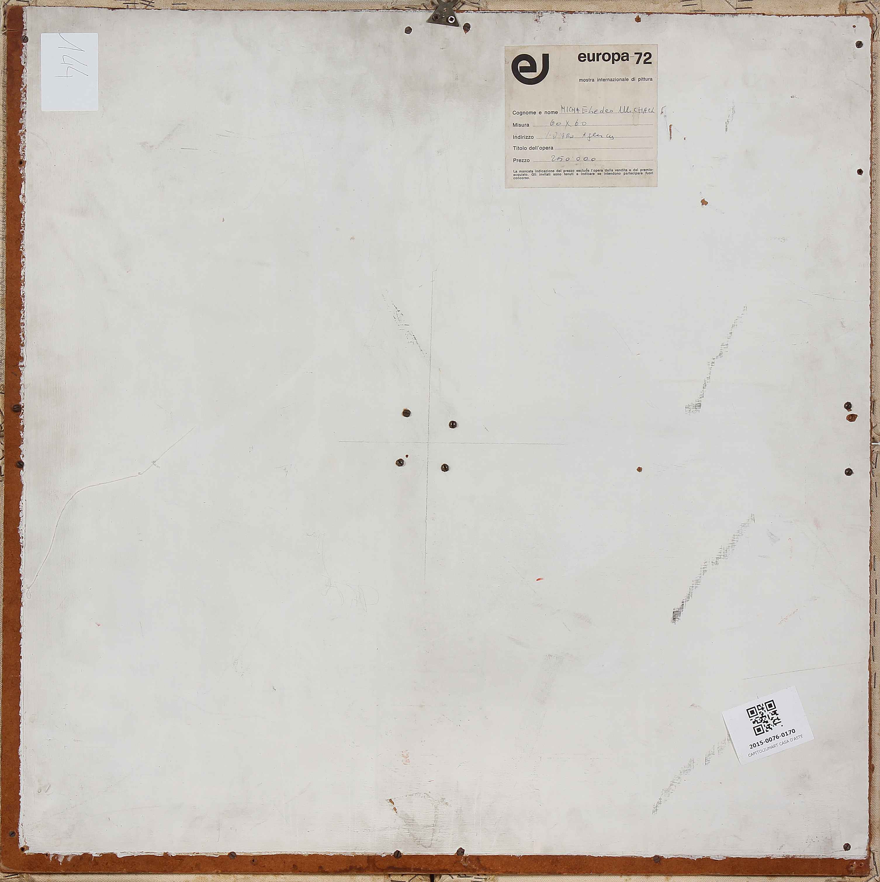 MICHAEL MICHAELEDES (n. 1923) Senza titolo. Tela estroflessa. Cm 60,00 x 60,00 x 6,00. Al retro cartiglio di Europa - 72, Mostra Internazionale di pittura.