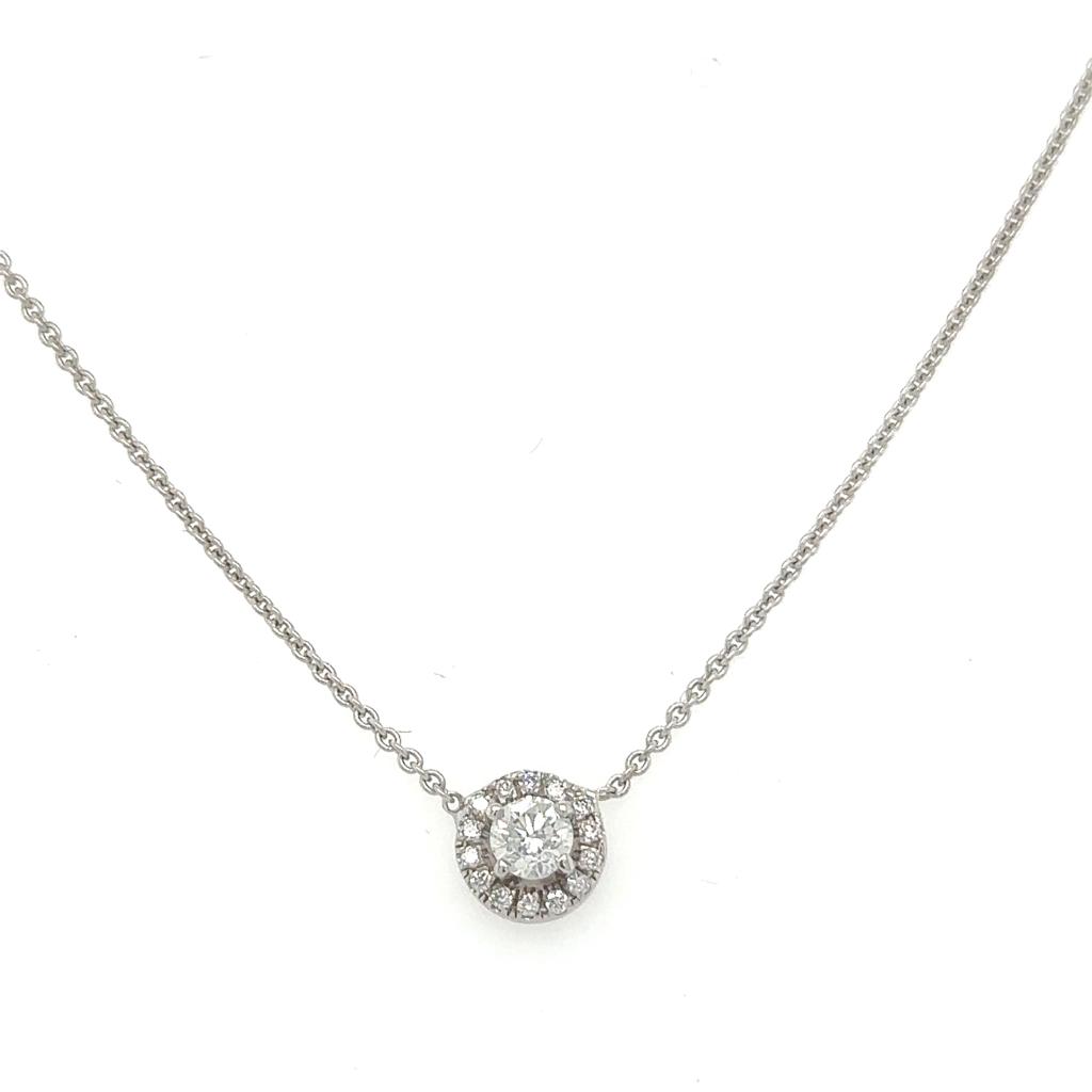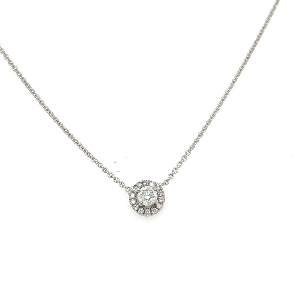 GIROCOLLO IN ORO BIANCO 14K CON DIAMANTE PER 0.25 CARATI S/SI2 E BRILLANTI PER 0.12 CARATI TOTALI F/SI1-2 TAGLIA-42CM PND30301 - COMMISSIONE D’ASTA 25%