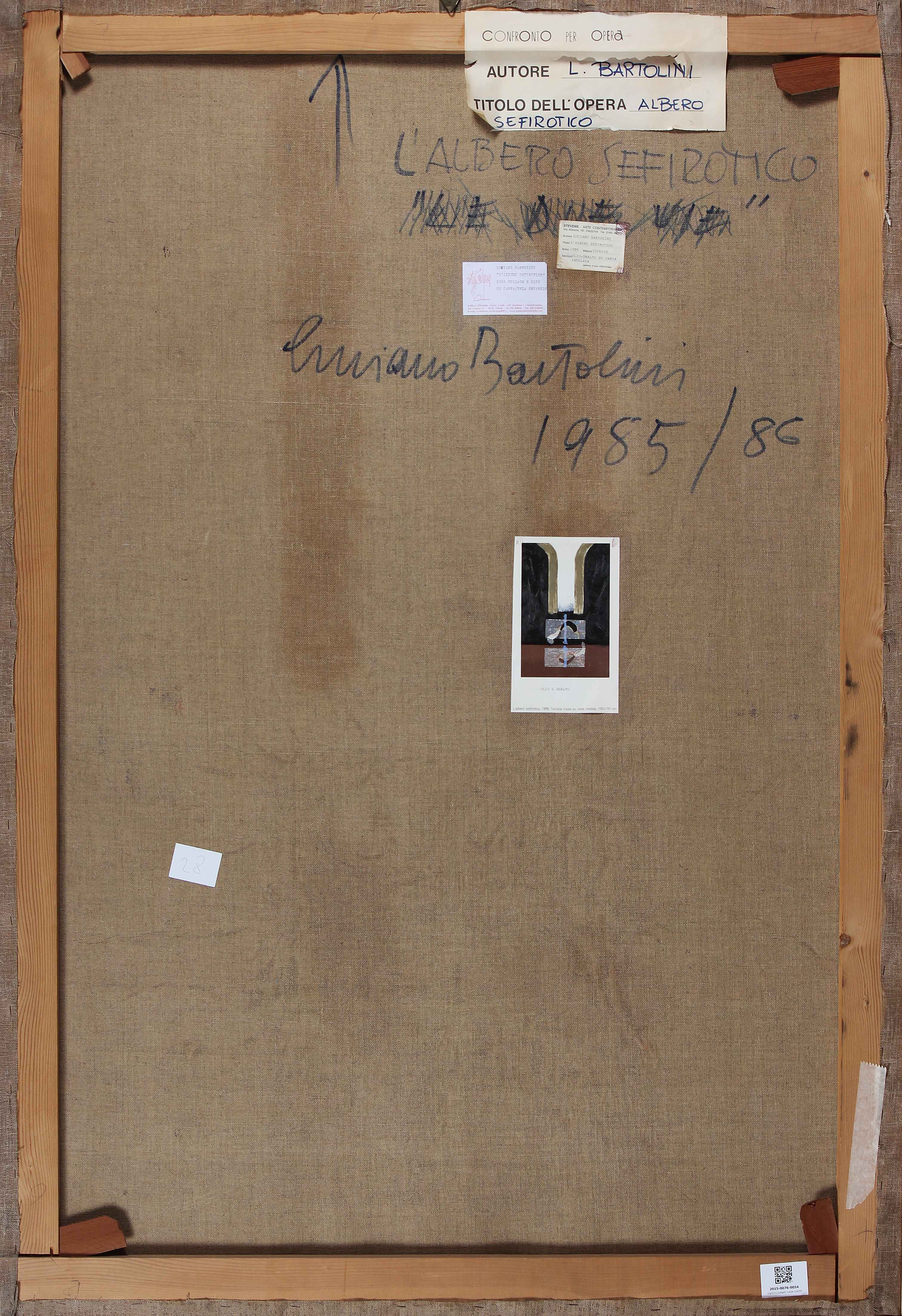 BARTOLINI LUCIANO (1948 - 1994) L'albero sefirotico. 1985. Tecnica mista su carta su tela. Cm 103,00 x 150,00. Al retro firma, titolo e anno; cartiglio descrittivo a cura di Stevens Arte Contemporanea, Padova e Aurelio Stefanini - Studio d'Arte, Firenze. Opera archiviata presso l'Archivio Luciano Bartolini come da documentazione fotografica allegata all'opera riportante il relativo numero d'inventario.