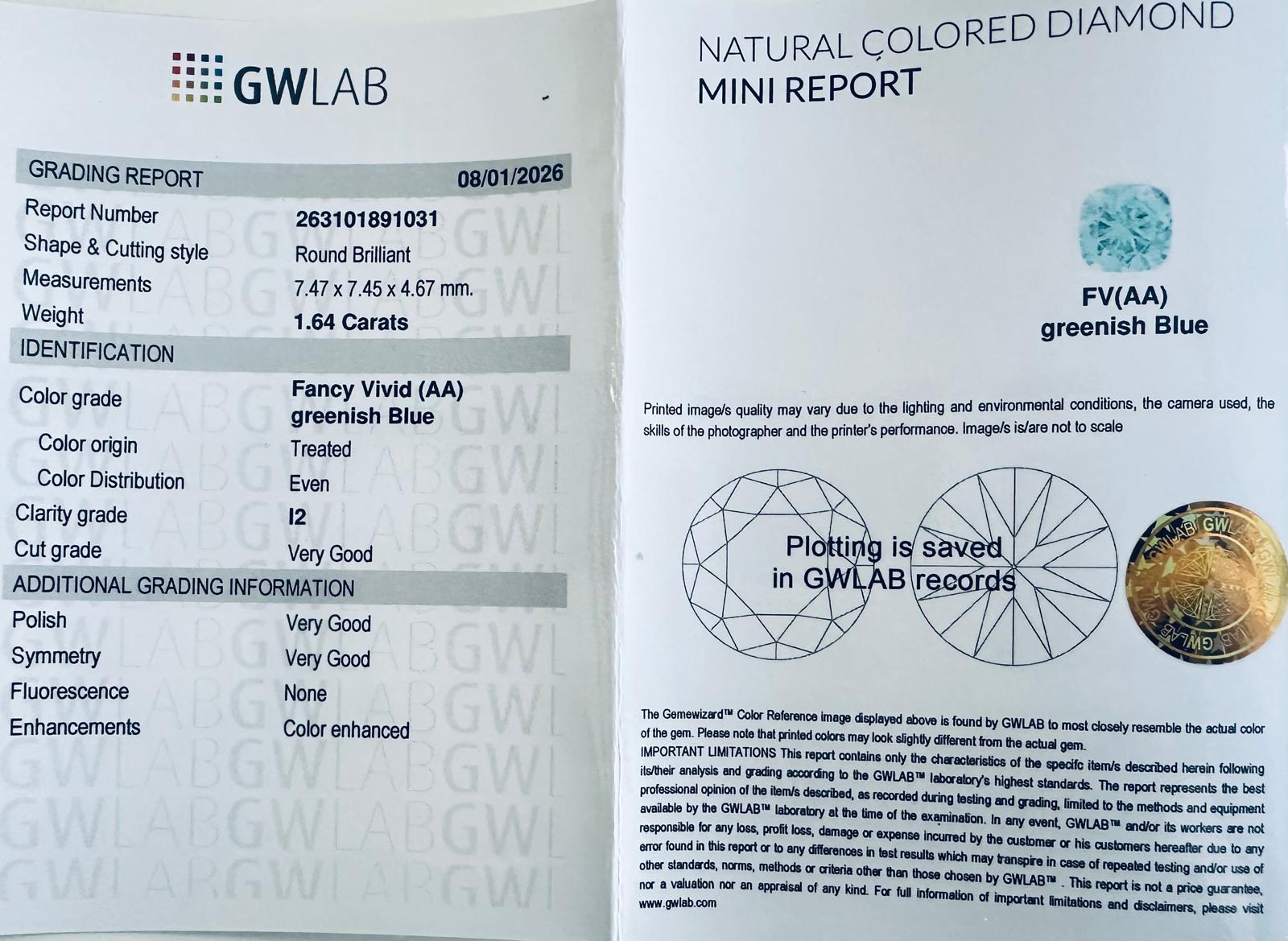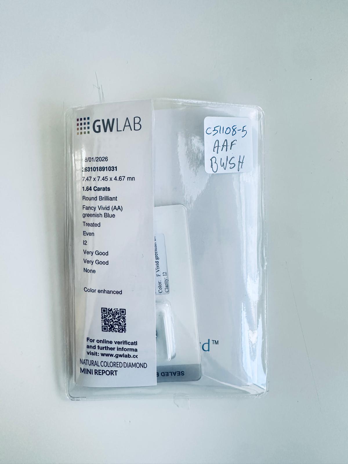 Lotto 349 | DIAMANTE NATURALE FANCY BLU VERDOGNOLO VIVIDO* 1,64 CT – C51108-5
