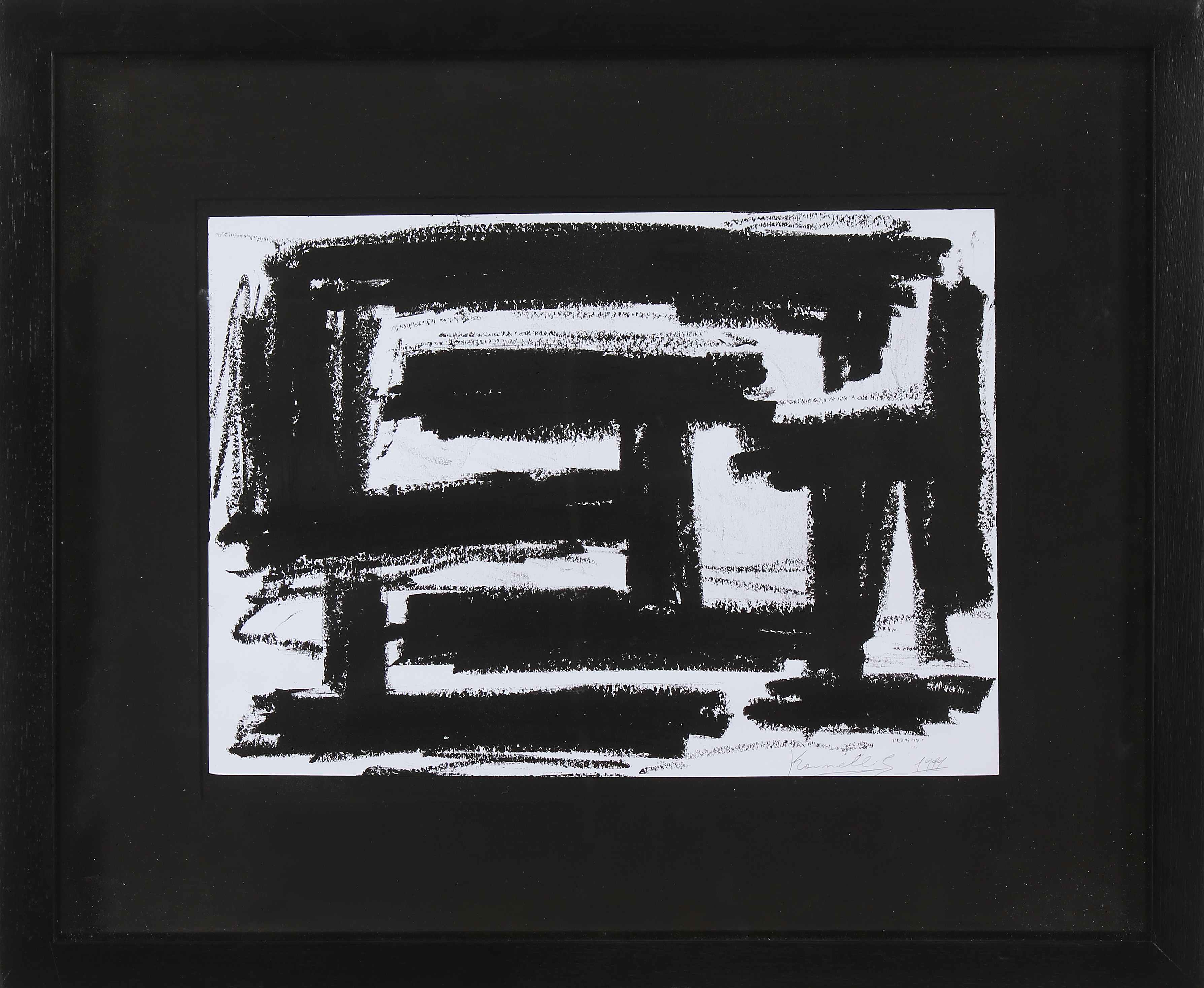KOUNELLIS JANNIS (n. 1936) Senza titolo. 1999. Catrame su carta. Cm 35,00 x 24,00. Firma e anno in basso a destra. Autentica dell'artista su fotografia. Cornice presente