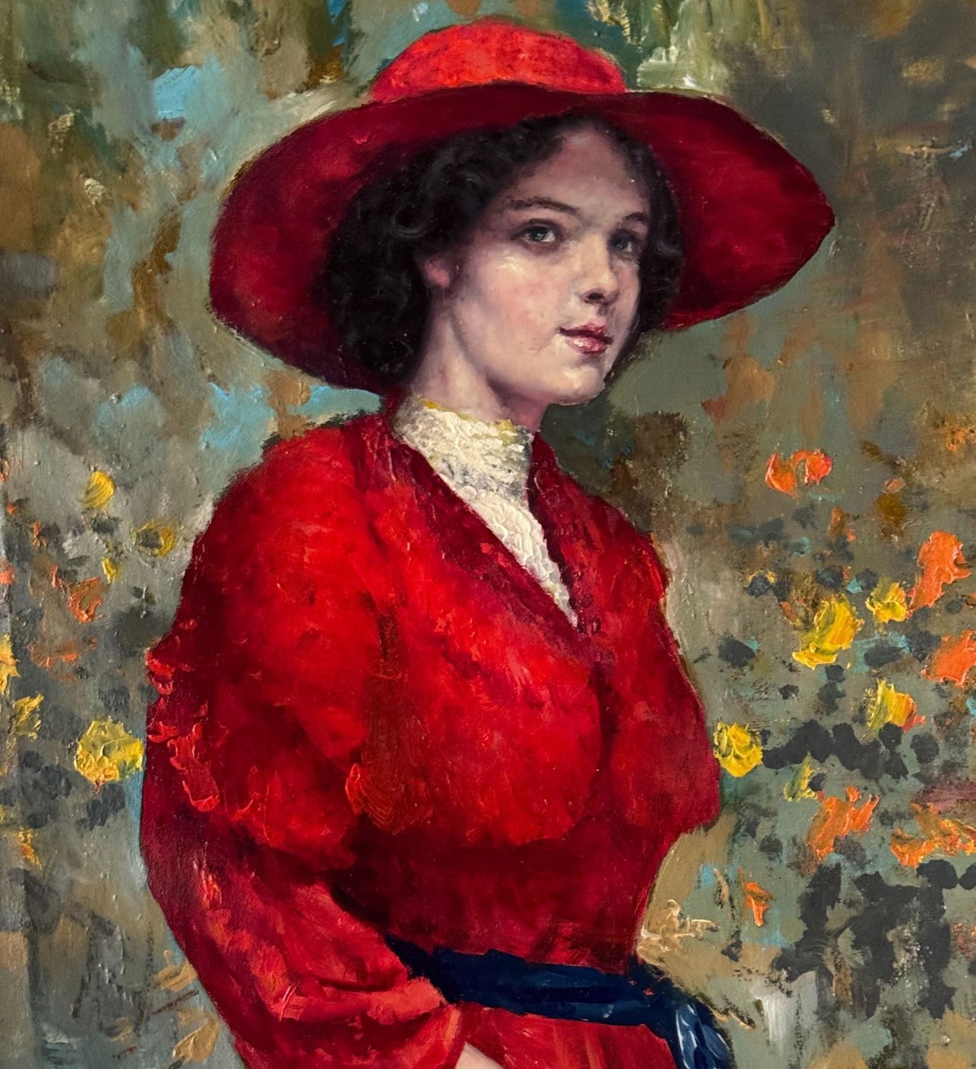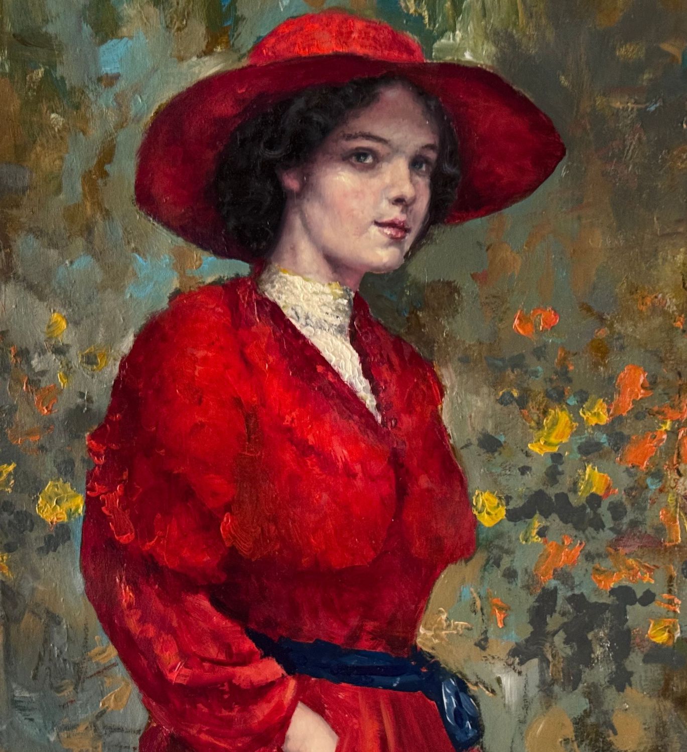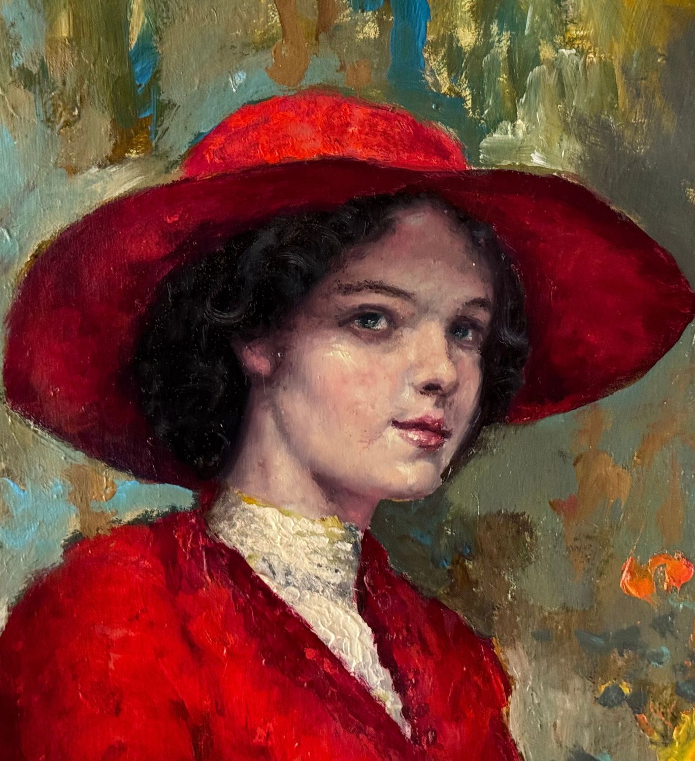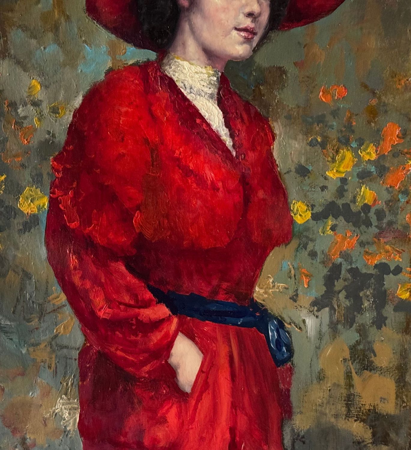 ANONIMO - Dipinto olio su tela, periodo XX secolo, scuola Italiana, raffigurante Ritratto di elegante donna in abito rosso. Dimensioni compreso cornice: 68x88 cm. Dimensioni interno cornice: 50x70 cm. Artista anonimo. Opera in buone condizioni.