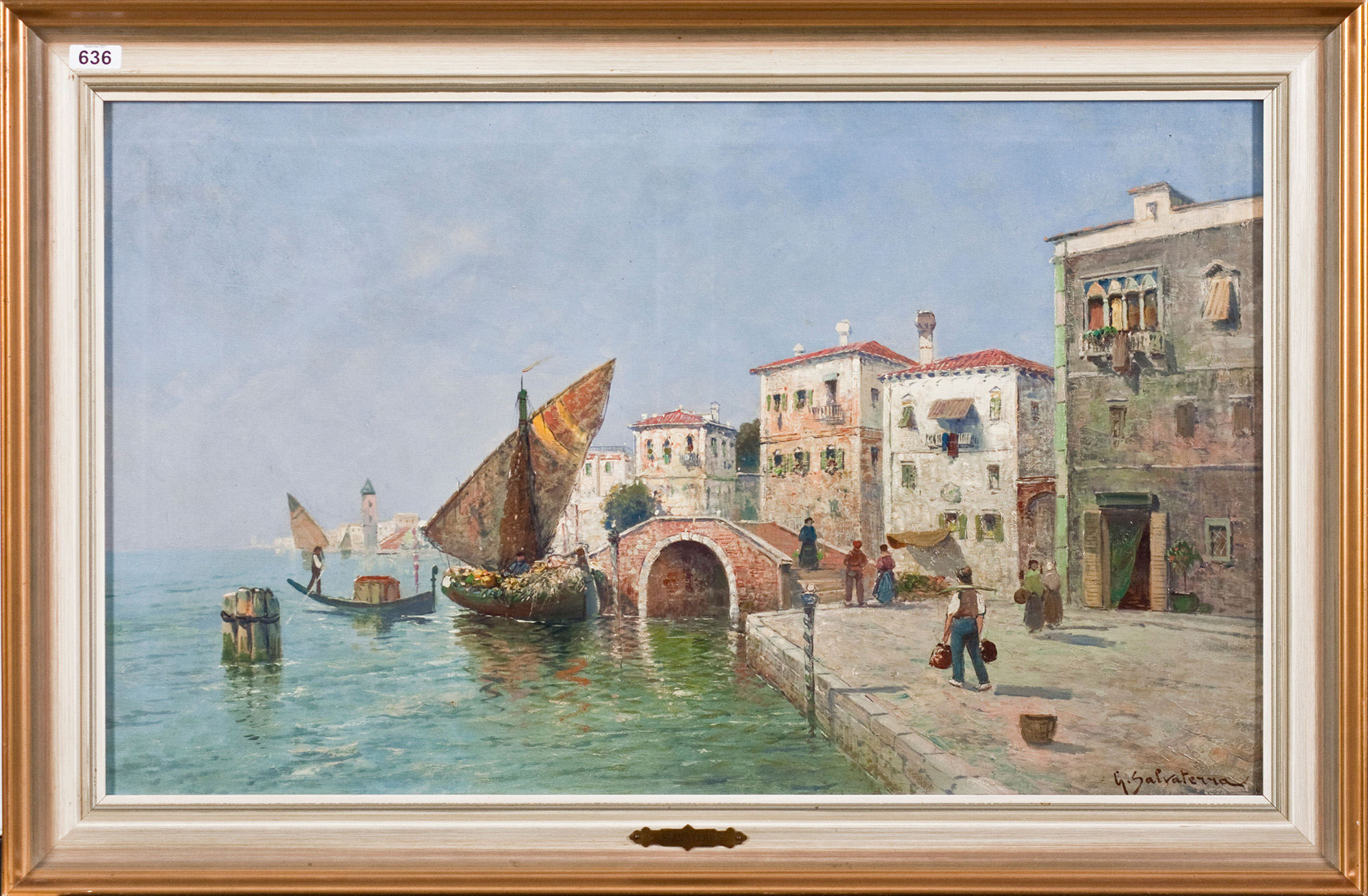 Giuseppe Salvaterra (XIX/XX secolo) Scorcio veneziano, 1900ca Olio su tela cm...