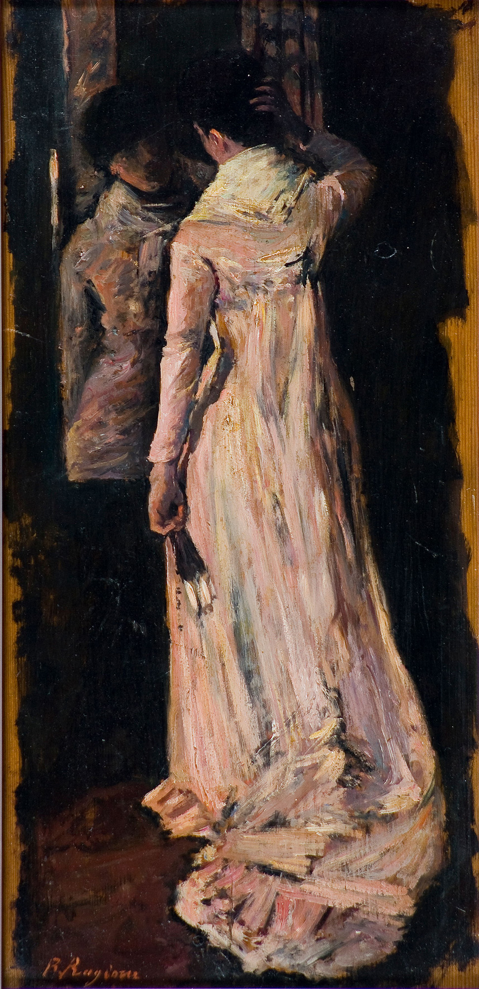 Raffaele Ragione (1851-1919) Signora allo specchio Olio su tavola cm 46x23...