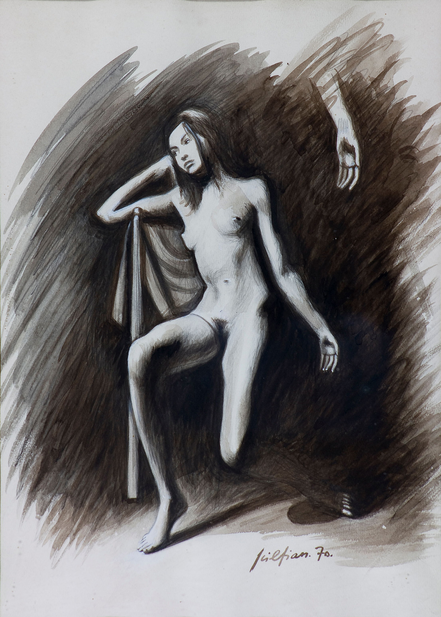 Gregorio Sciltian (1900-1985) Studio di nudo femminile, 1970 pastello e china...